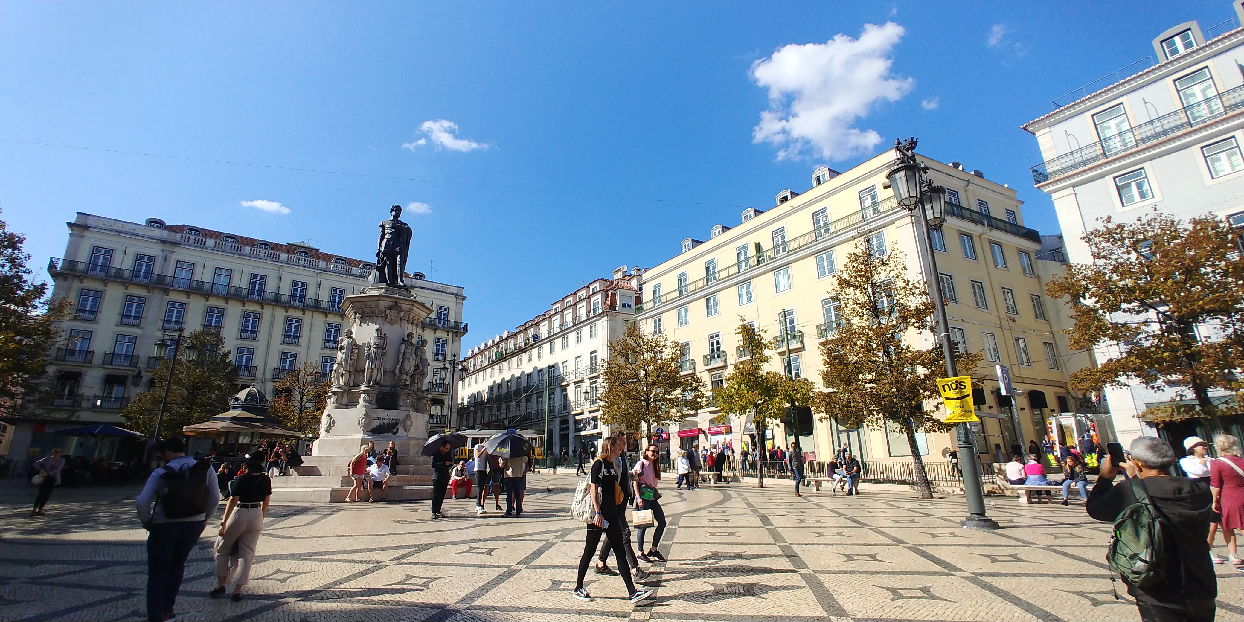 작은 광장 사이에 커다란 동상이 서있는 이 곳은 포르투갈이 자랑하는 시인의 이름을 딴 카몽이스 광장 Luís de Camões 입니다.유럽의 여느 광장과 같이 사람이 모이고, 교통이 모이는 곳입니다.
