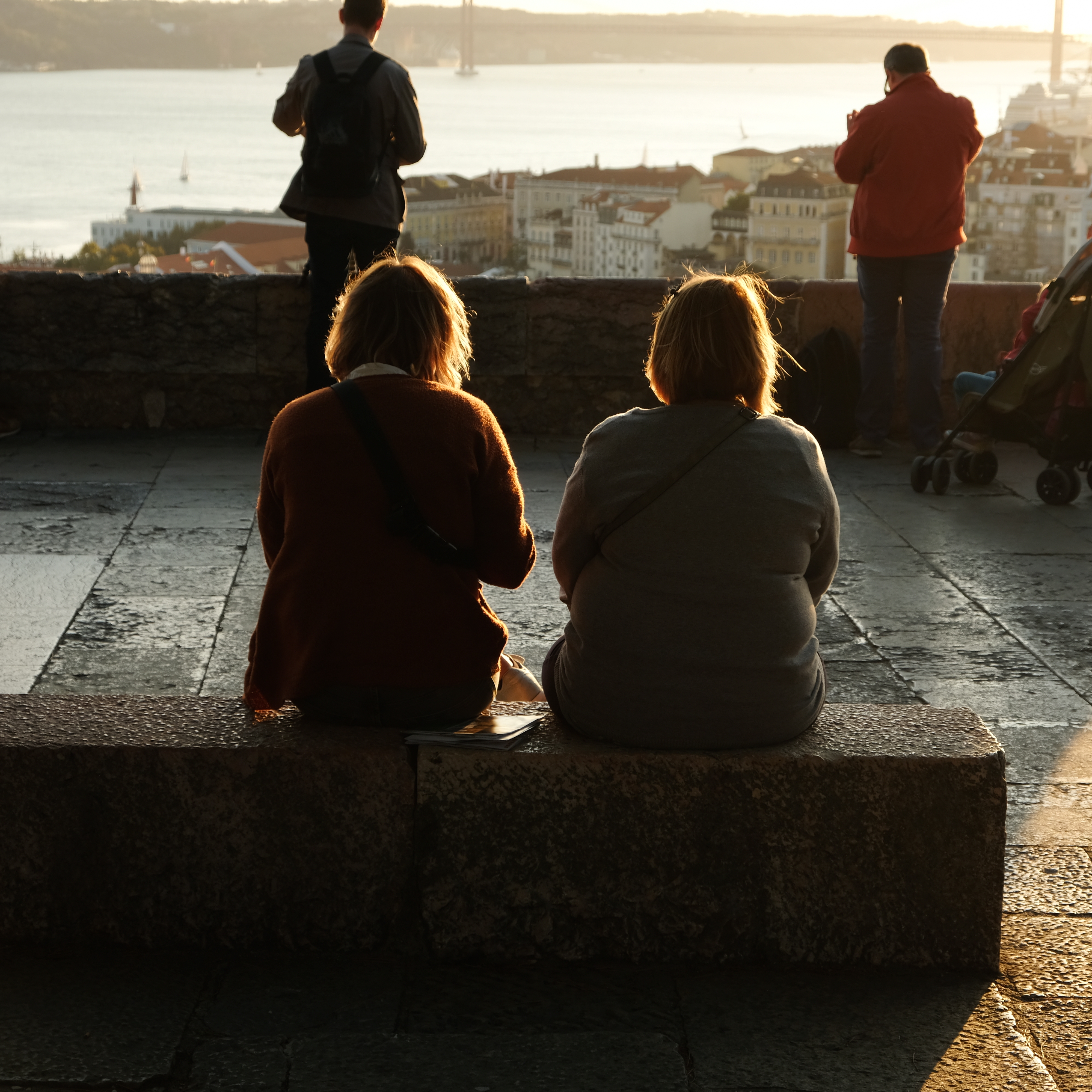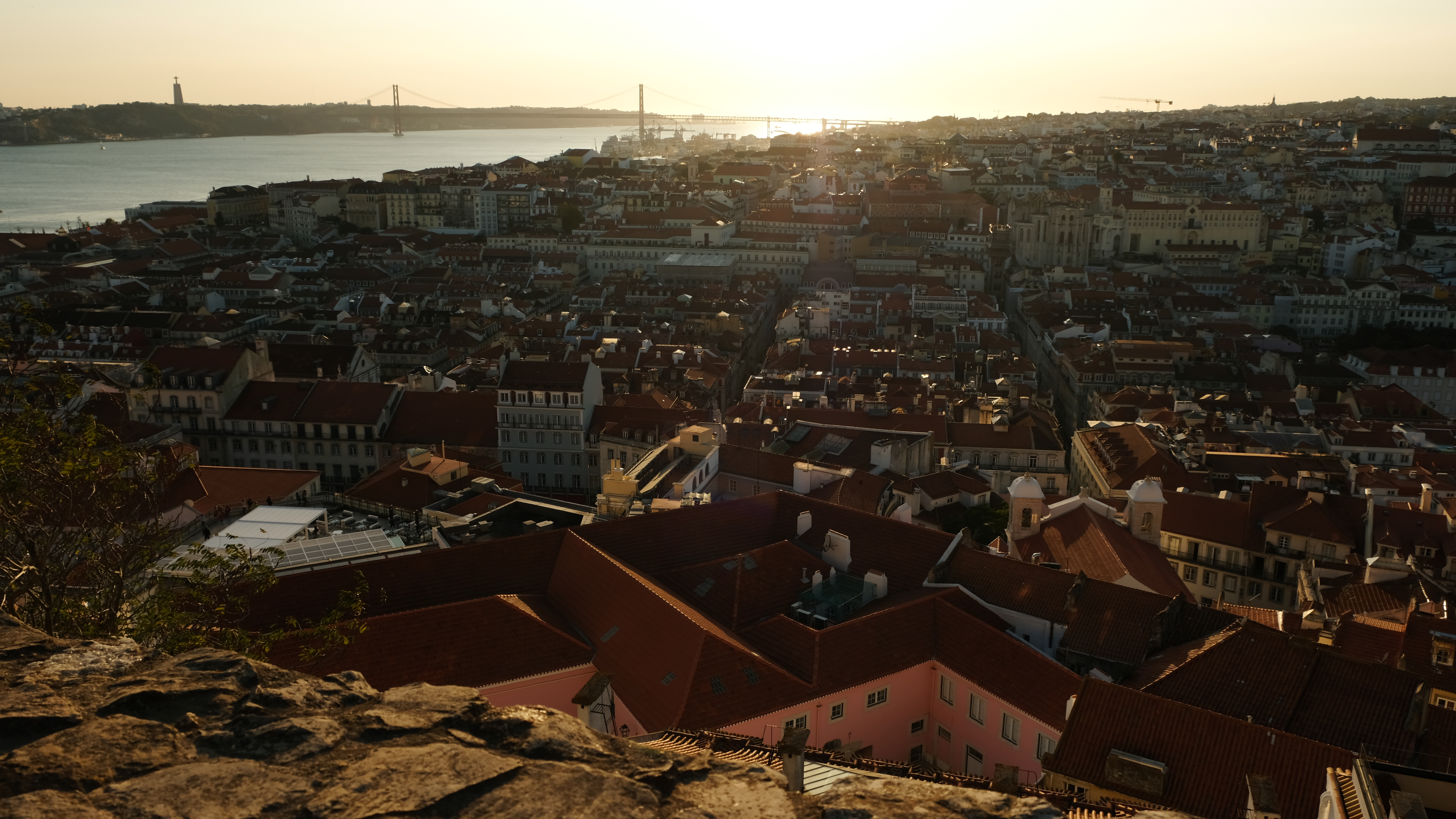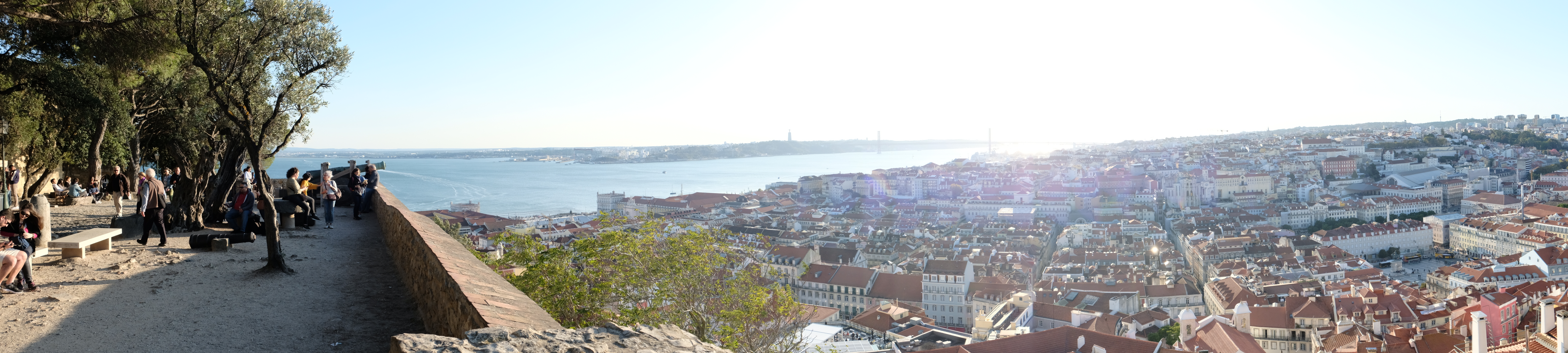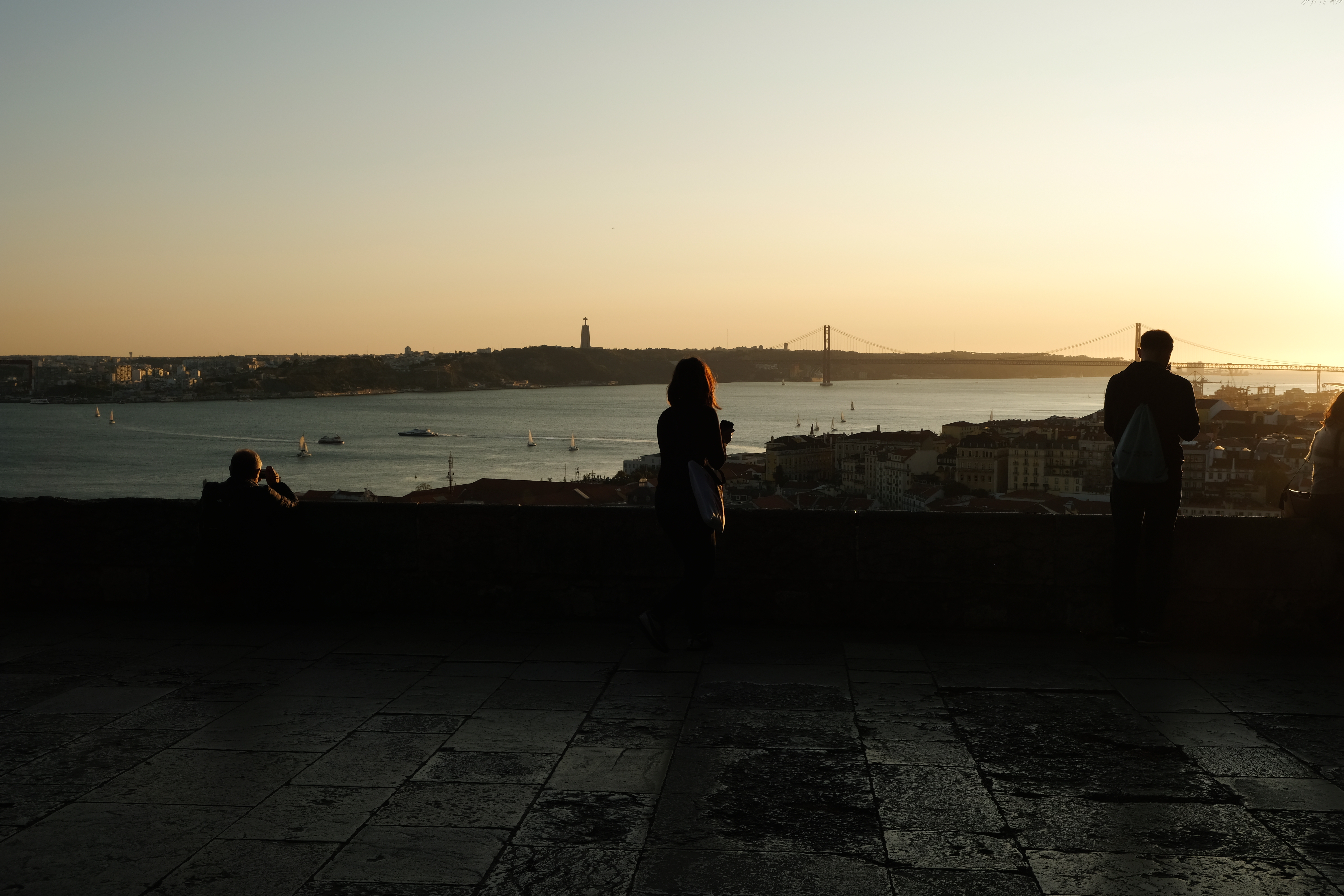 와인을 파는 상인이 있어서 한 잔 사마셨습니다. 가격은 전혀 싸지 않습니다. 해지는 모습을 보며 와인 한 잔 하기엔 좋으니 차라리 성 밖에서 사서 들고 오시는것도 나쁘지 않습니다. 성 입구쪽에 와인 파는 상점도 있습니다.해가 조금씩 떨어지기 시작하면서 테주강이 황금빛으로 물듭니다. 저 멀리 4월 25일 다리가 보이네요