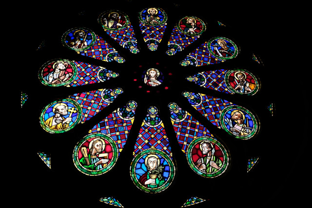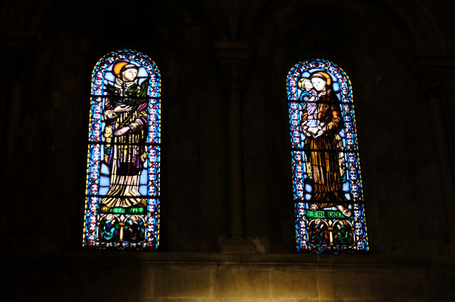 성인에 대한 스테인드 글라스가 있고