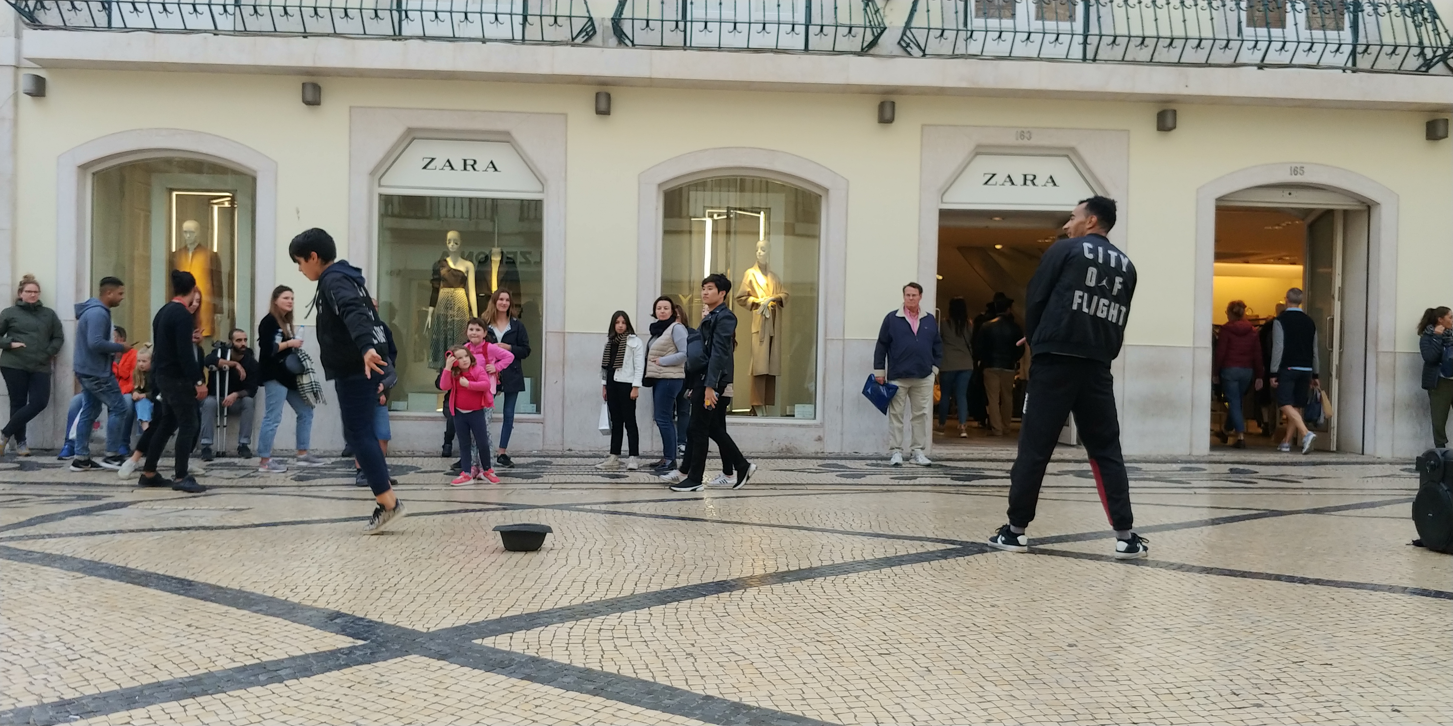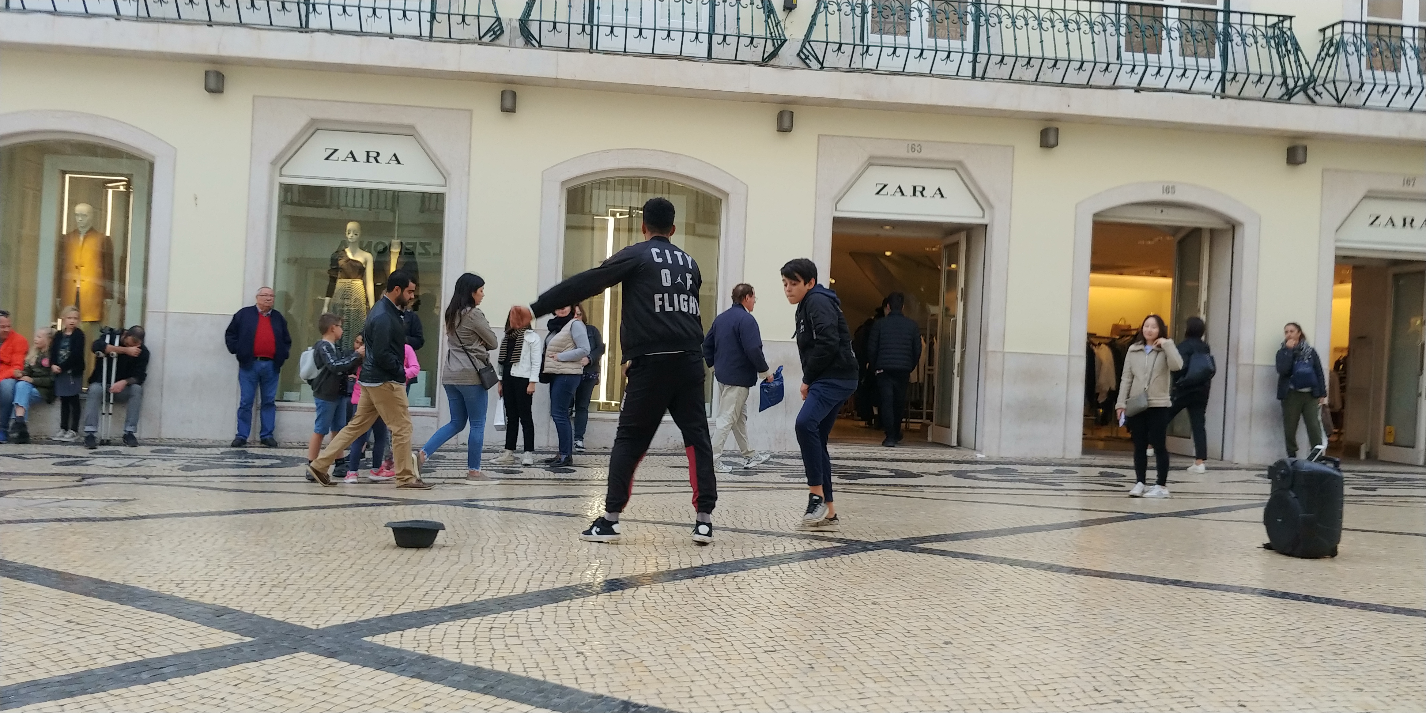 길거리에서 어린 꼬마와 함께 춤을 추는 청년도 보입니다.