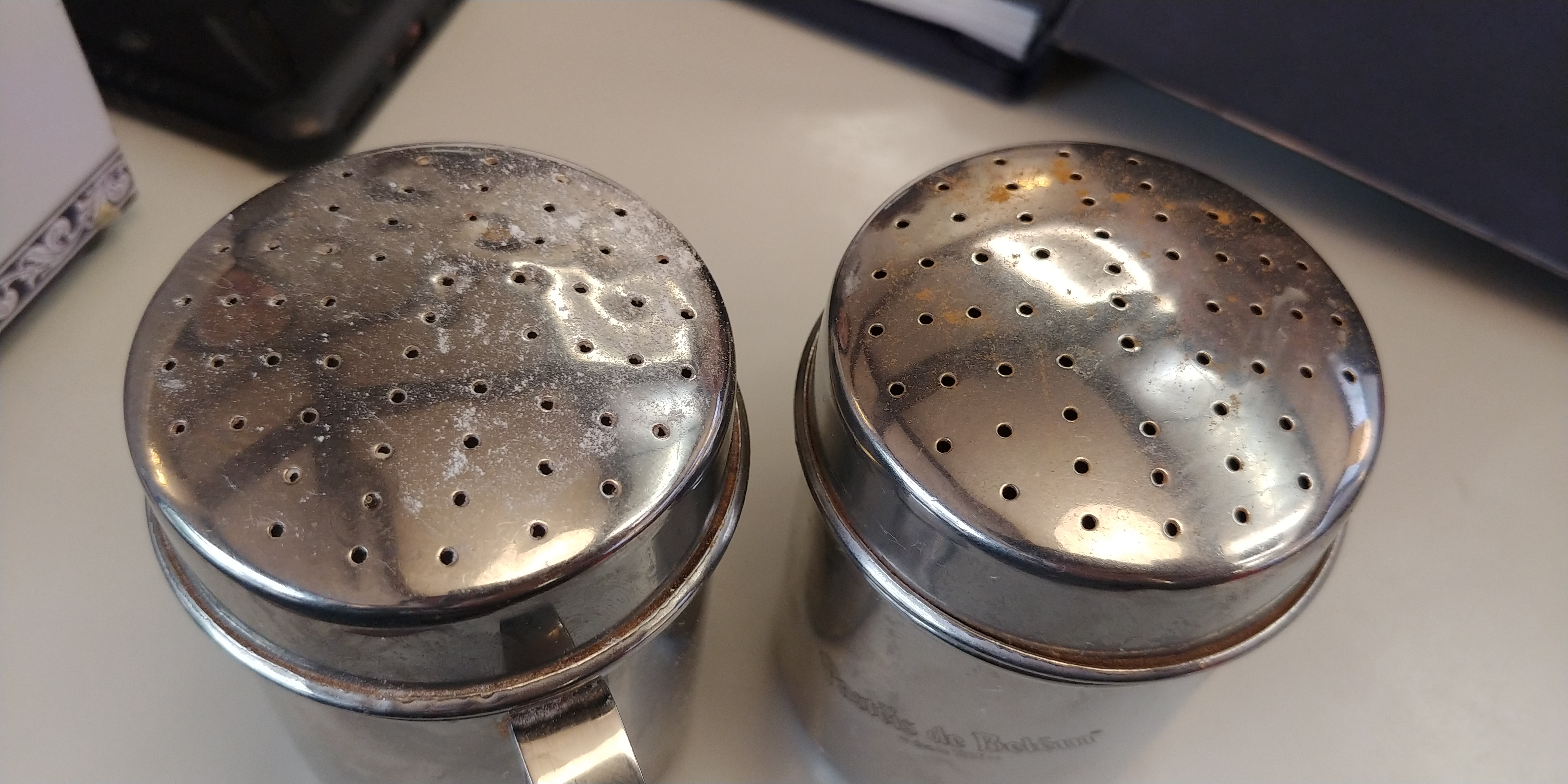 이 곳이 에그타르트로 유명해졌지만, 이 곳을 찾은 관광객들은 대부분 다른 빵을 드시더라구요;;드디어 자리에 앉았습니다. 메뉴판을 열자마자 에그타르트가 떡하니 보이네요.에그타르트를 위한 슈가파우더, 시나몬 파우더입니다.