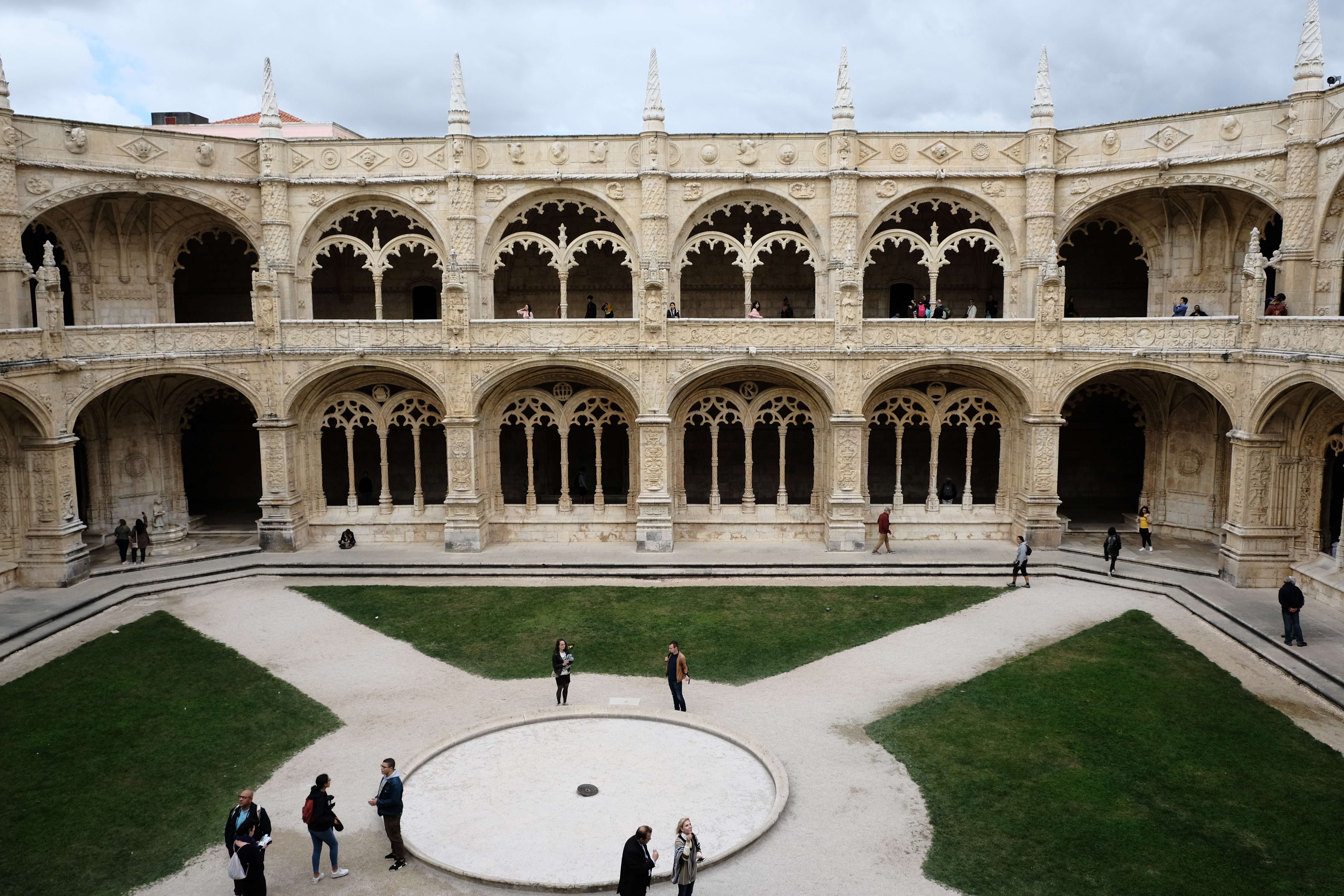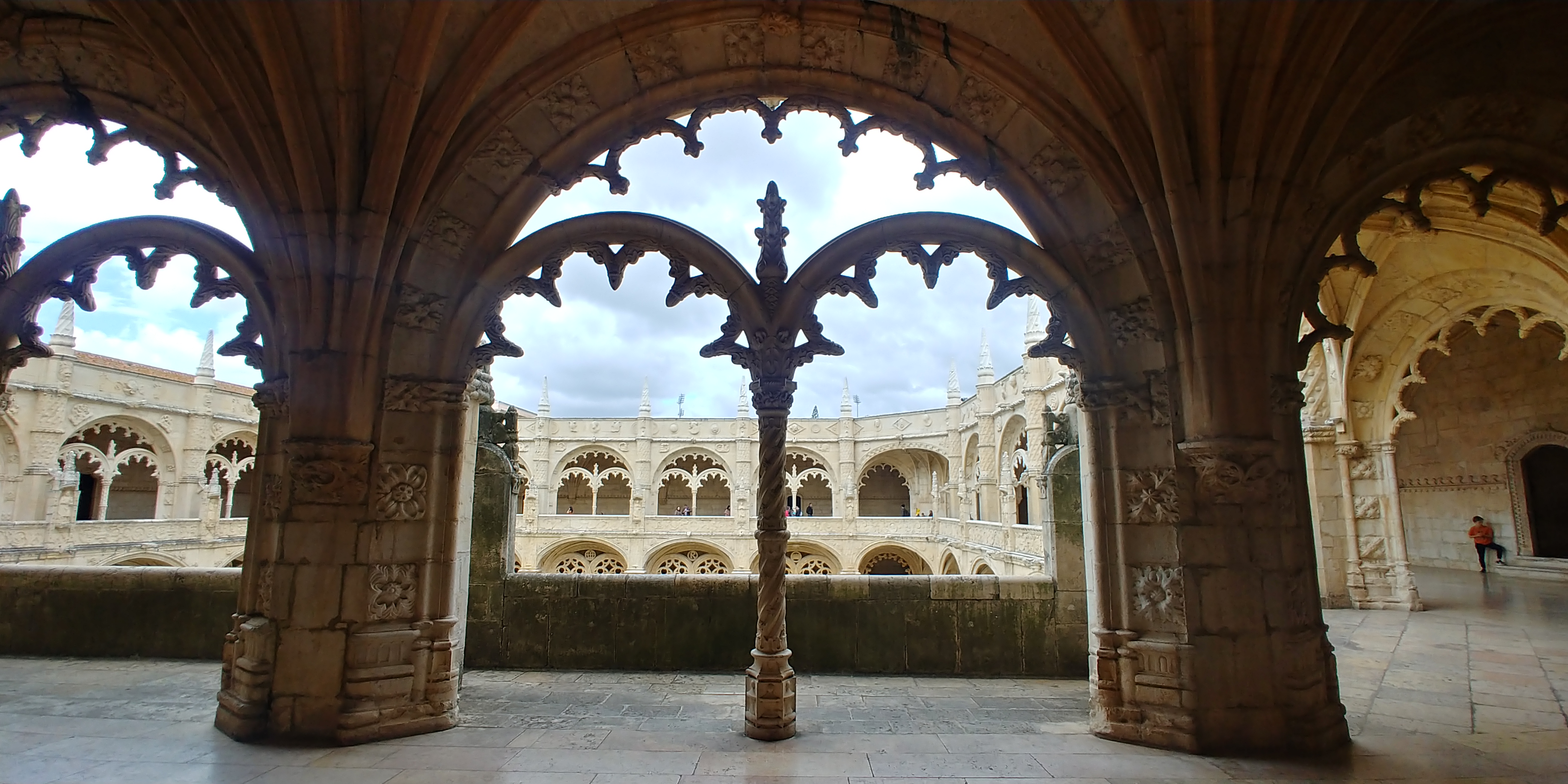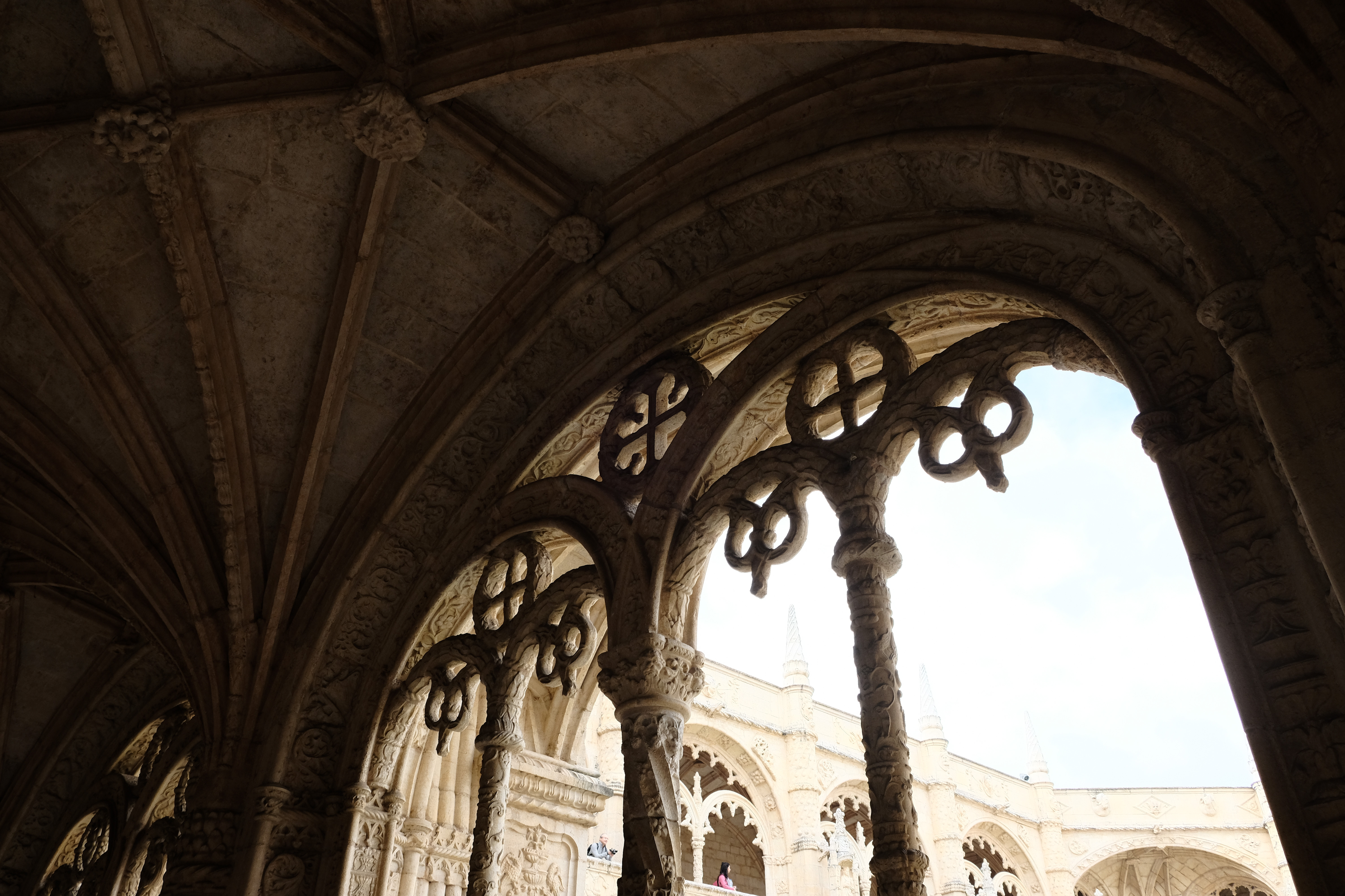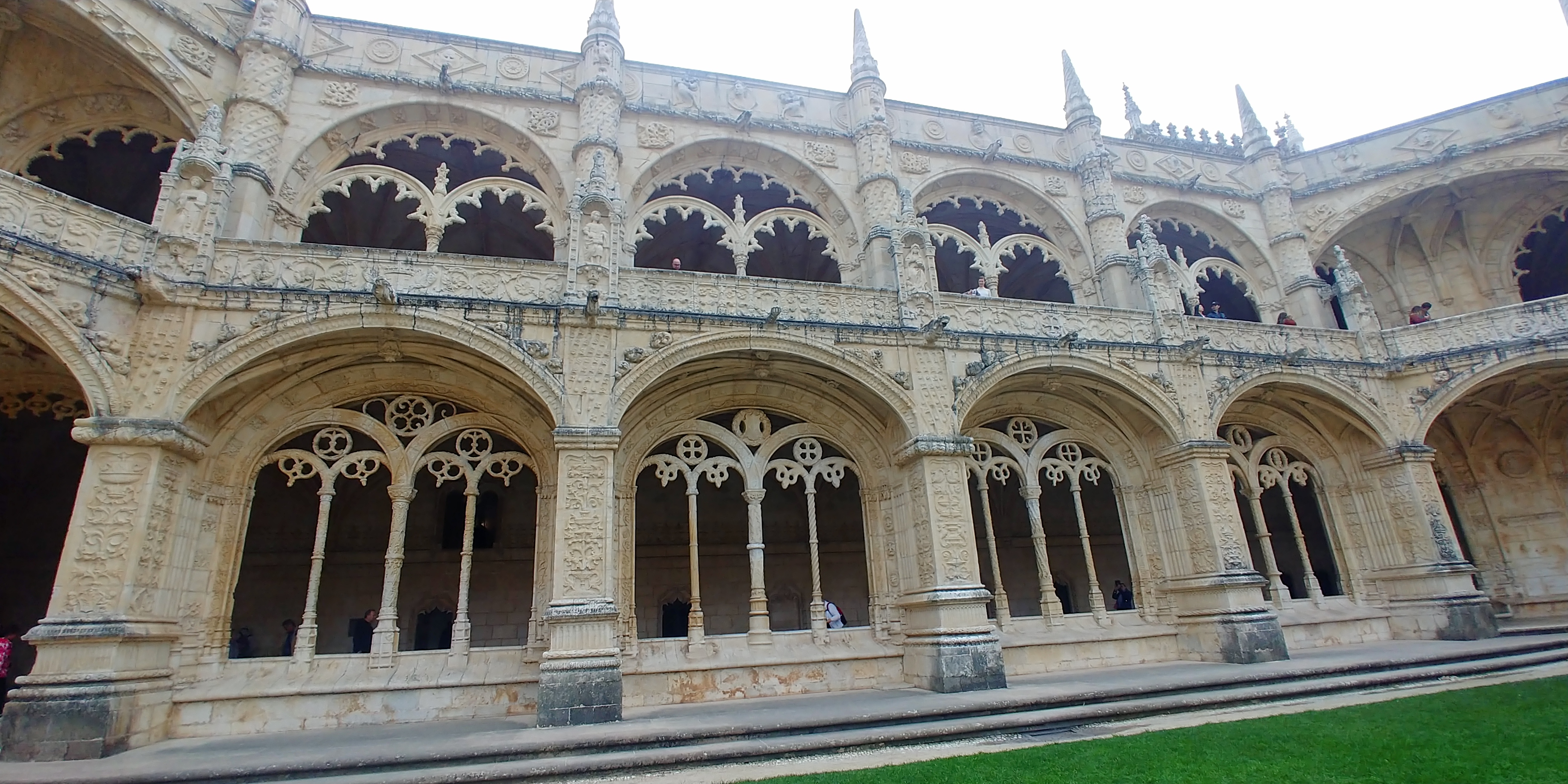 제로니무스 수도원으로 입장하면.. 가운데 십자모양의 정원을 두고 큰 회랑이 둘러썬 구조를 보게 됩니다.이 수도원이 유네스코 세계문화유산에 꼽힌 이유 중 하나는 바로 리스본 대지진 이후에 남아있는 몇 안되는 마누엘 양식이 남아있는 건물이기 때문입니다.하늘이.. 흐린데 빛이 강해서.. 하이라이트가 날라가는 문제가 생깁니다. ;; 아래에서 사진을 찍으면..엉망이 되네요2층으로 올라오니 좀 낫습니다 휴..