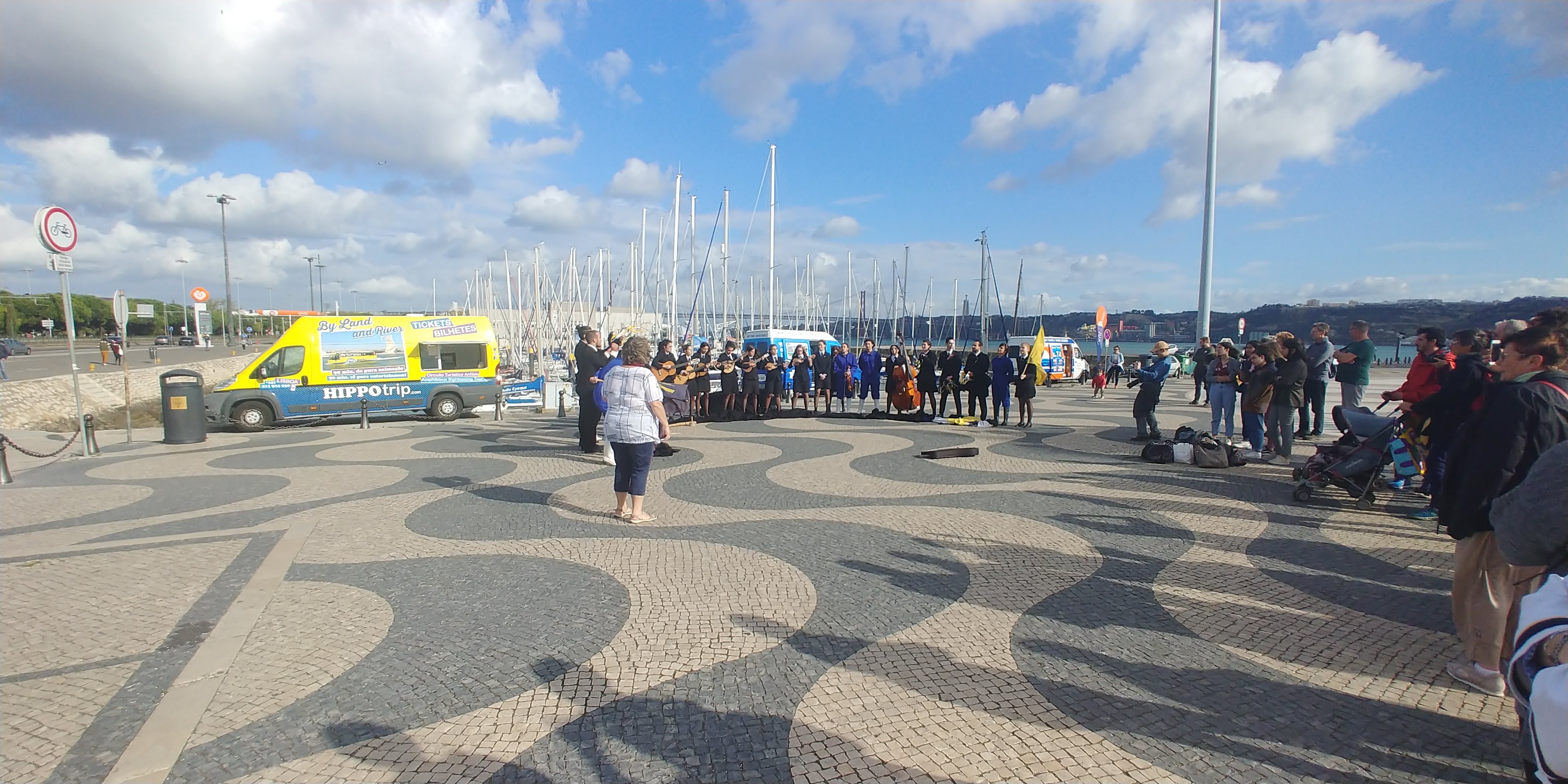 벨렝탑 - 발견기념비쪽은 수많은 관광객과 버스킹을 볼 수 있습니다. 오늘은 어디 학교에서 단체로 나온거 같습니다.