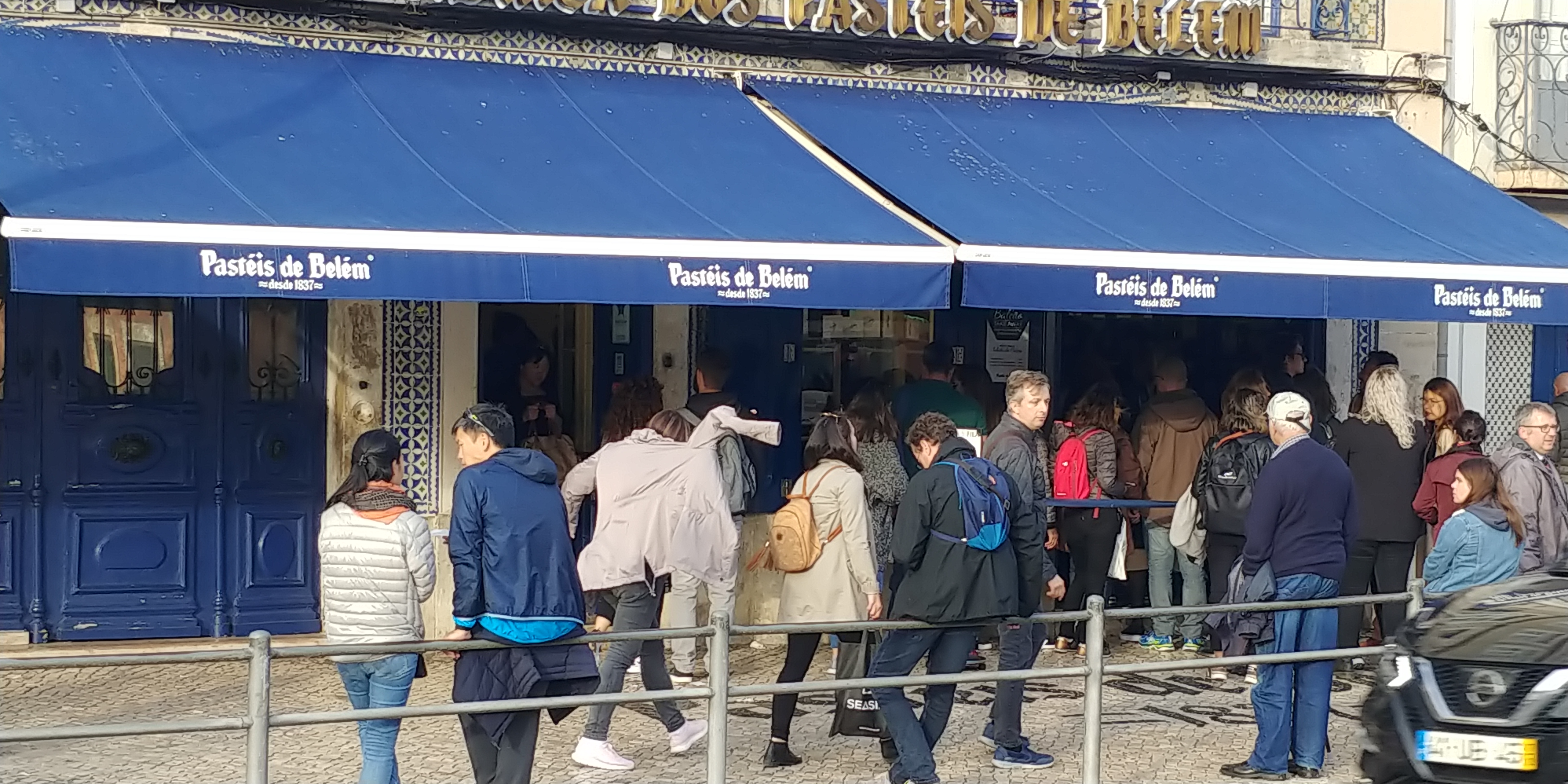 바로 에그타르트로 유명한 파스테이스 드 벨렝입니다. 가게 전면 사진은 저녁에 찍었는데, 아침~ 낮에는 정말 저 앞에 엄청난 인파가 몰려있습니다.