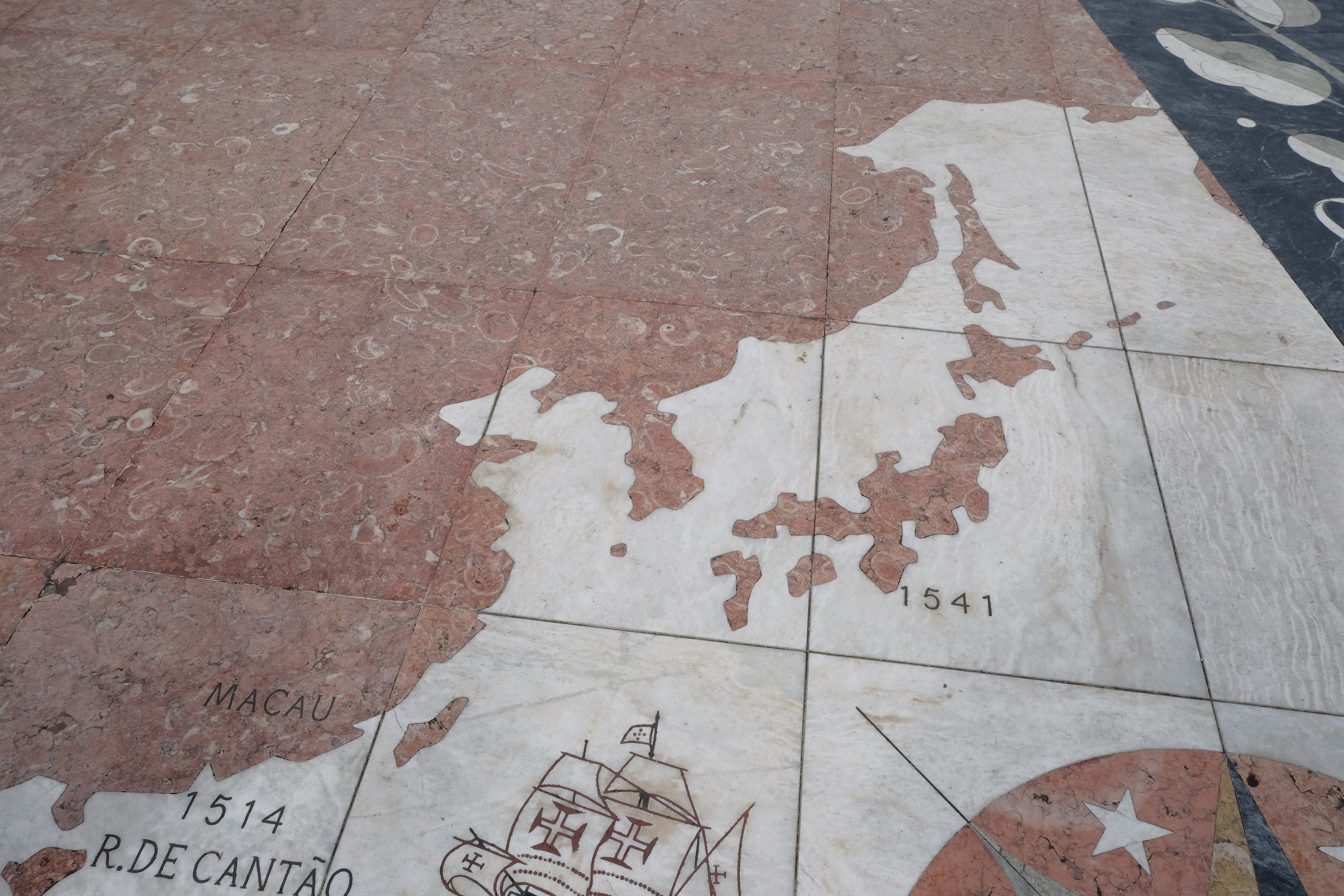 발견기념비의 앞 광장에는 대항해시대 포르투갈이 발견했던 곳, 식민지였던 곳이 세겨져있습니다.