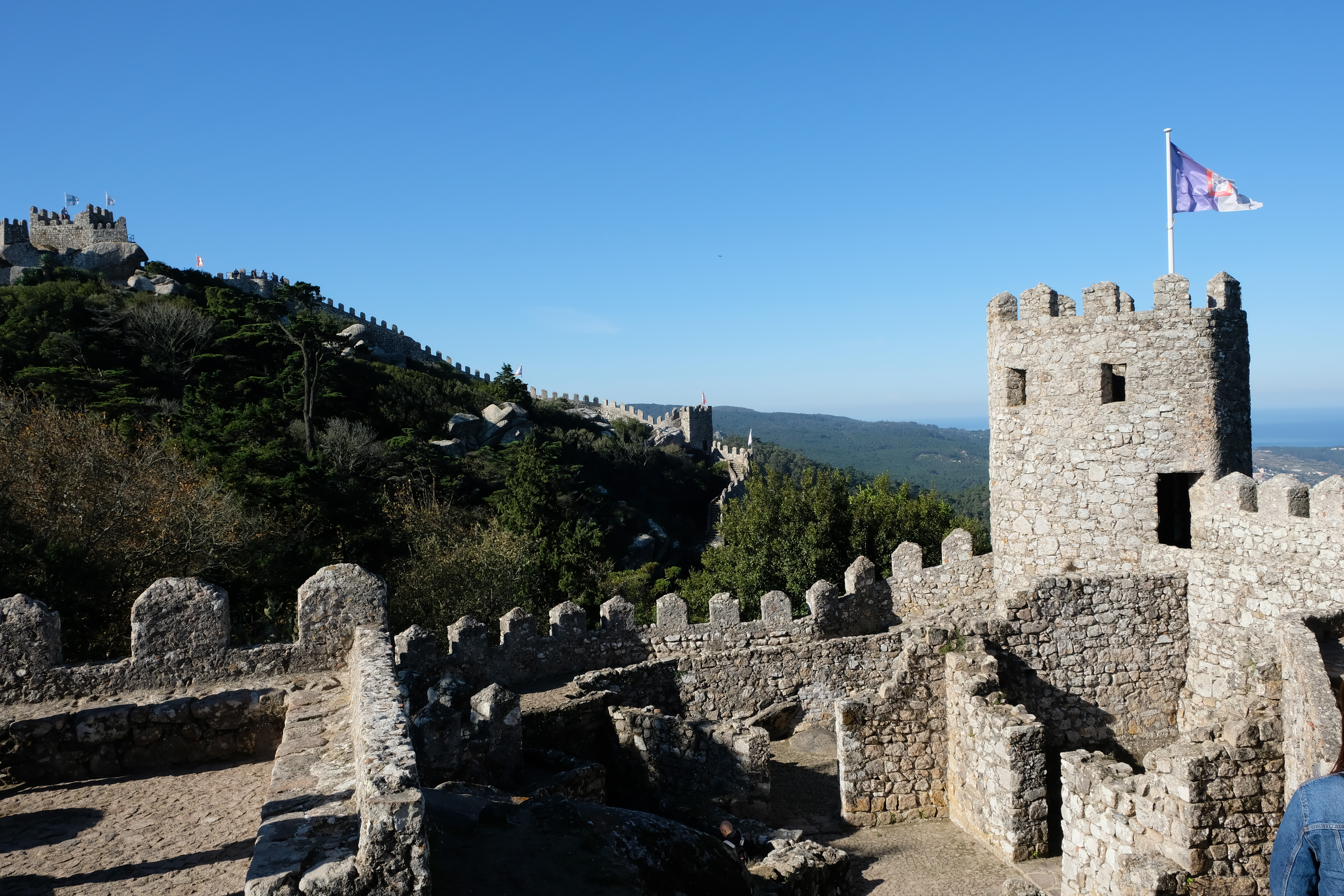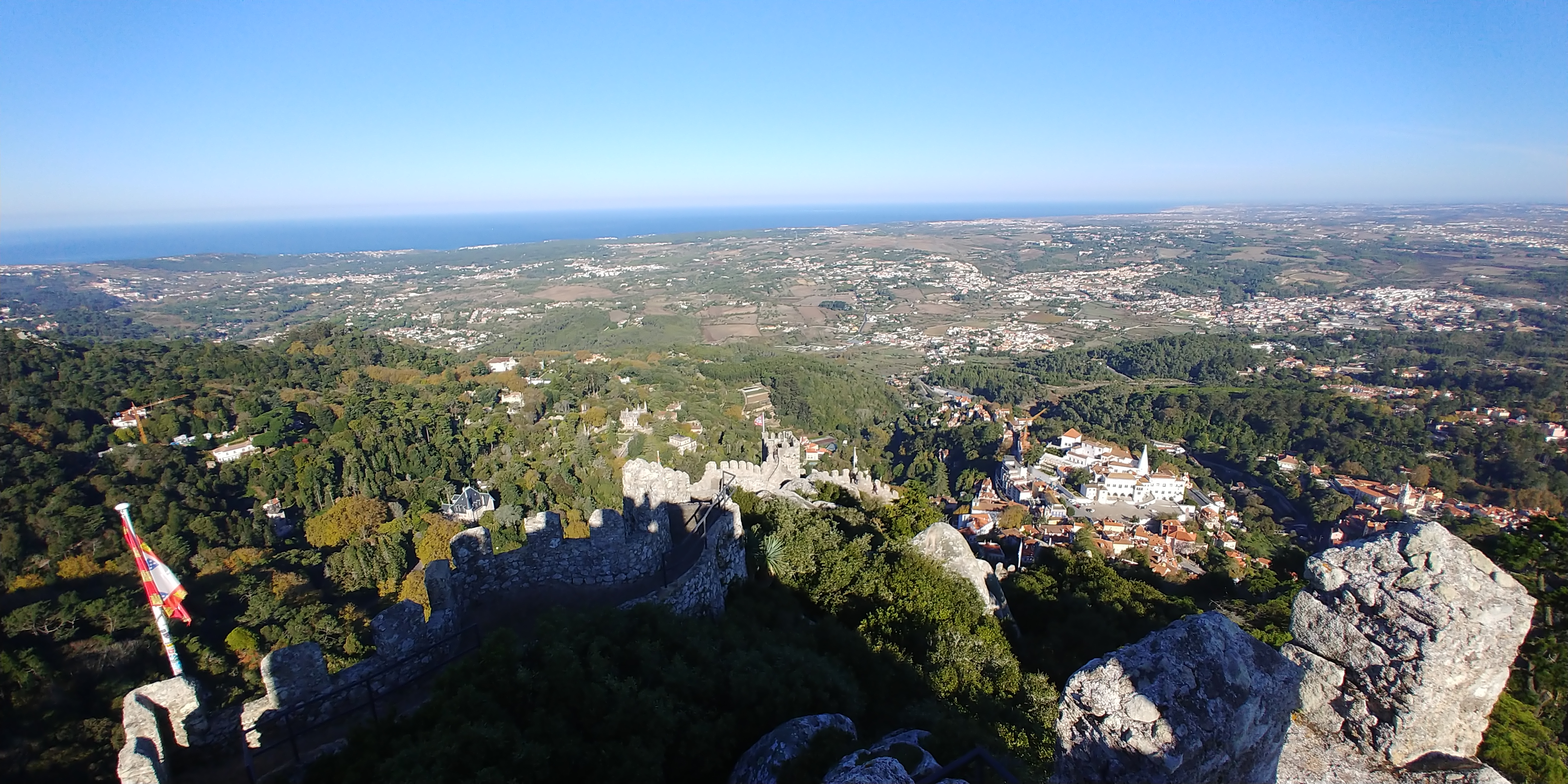 ㅇ ㅏ.. 너무 좋네요.. 저 멀리 신트라 성의 굴뚝이 보입니다벌써 이만큼 올라왔습니다. 아침 운동으로 제격이네요 ㅋㅋㅋ15번을 추천드린 이유, 저 멀리 보이는 페냐성의 전경을 구경할 수 있기 떄문입니다.