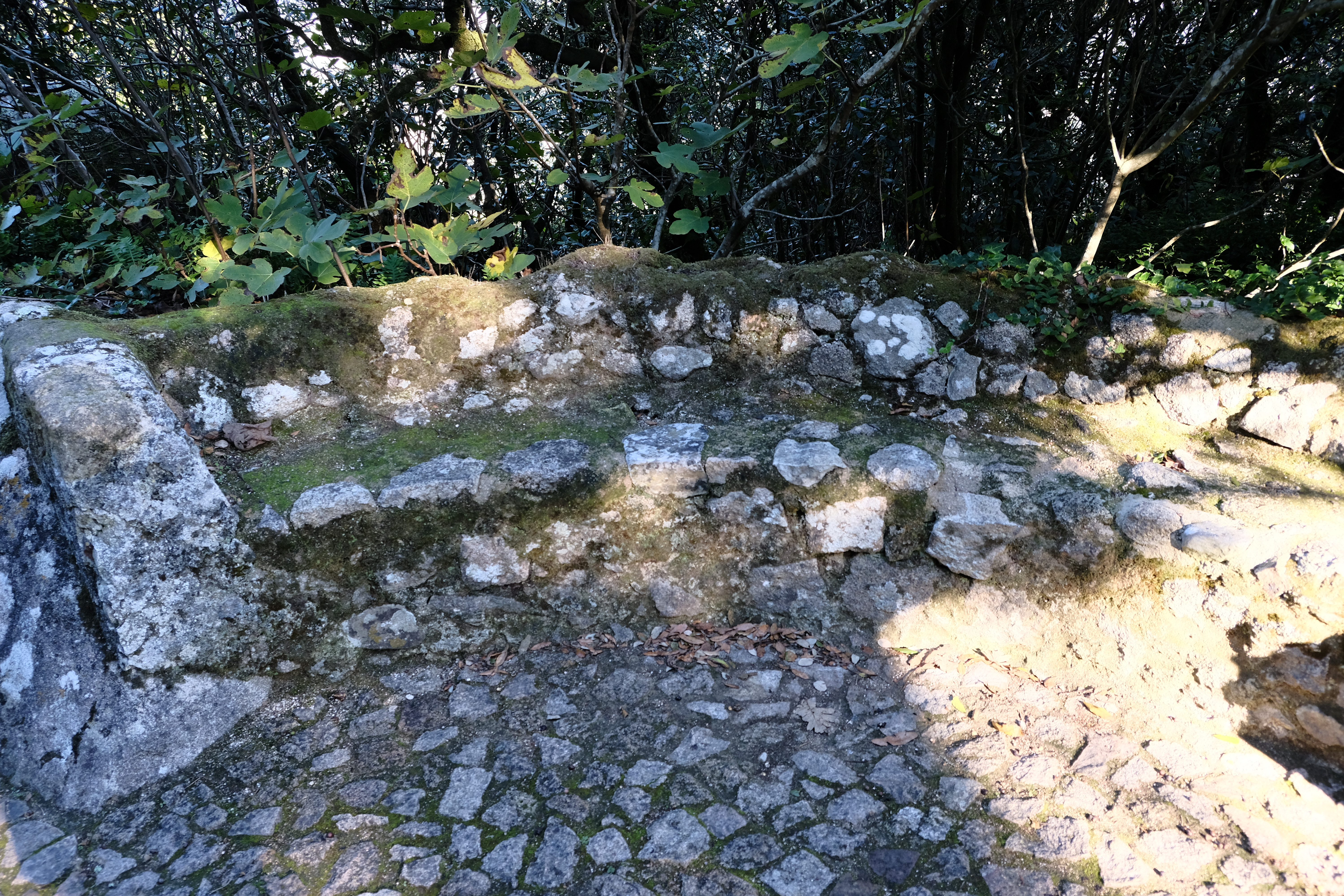오래된 성의 돌길을 이른 아침에 걷는 기분은 상당히 상쾌합니다.중간중간에 잠시 쉬어갈 수 있는 돌 의자가 있지만 앉기에는 좋지 않습니다. 이끼때문에 젖어있거든요