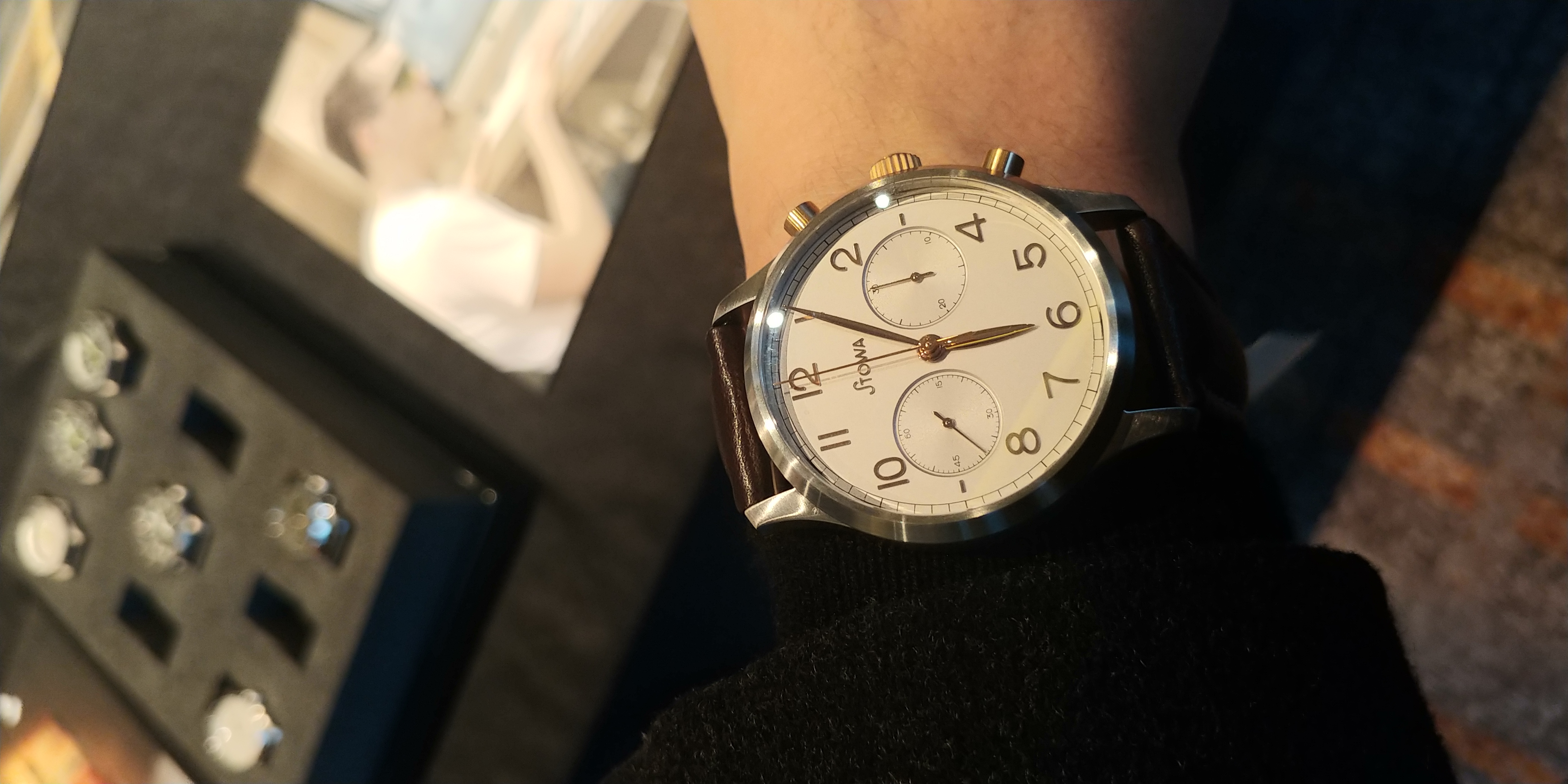 정말 아름다웠던 크로노그래프 1938 브론즈 컬러입니다. 구형 STOWA 로고가 신형보다 확실히 아름답네요 ㅠㅠ 사진보다 실제가 훨씬 블링블링합니다.