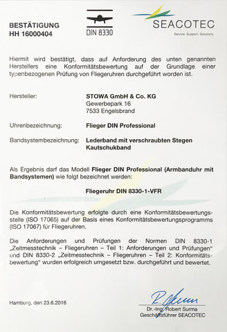 파일럿 워치에만 특화된 독일 공업 규격인 DIN 8330 인증은 다이얼 가독성, 조작의 용이성, 온도 및 가속, 기압 변화, 자기장에 따른 오차등을 테스트합니다. DIN 8330을 인증받은 제품들은 관련 공식 인증서들이 함께 첨부되어 출고됩니다.그냥 귀여운 플리거 클래식도 있고플리거 클래식 크로노 제품도 있습니다. 2012년 Goldene Unruh 2500유로 이하급에서 우승한 시계입니다.