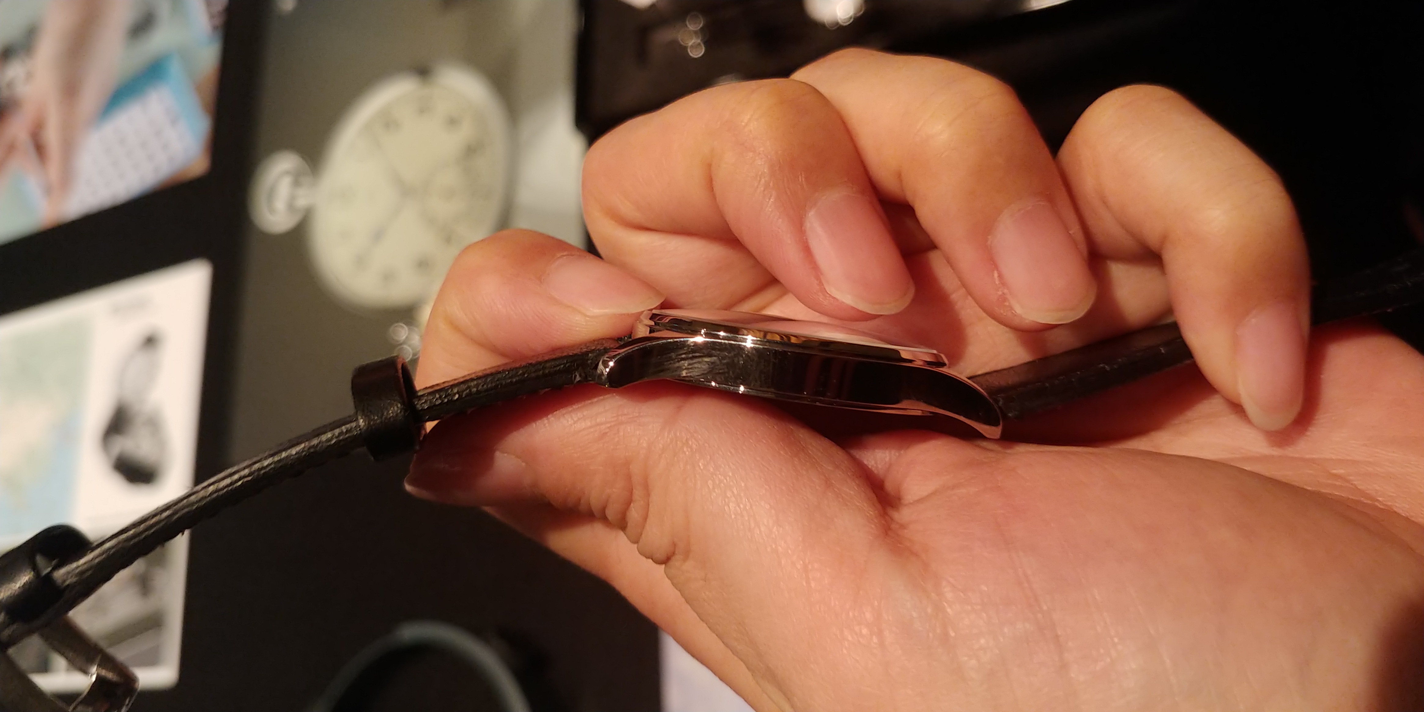 자유롭게 시계를 차봅니다. 묵직한 느낌이 듭니다.아, 저는 이날 마린 오리지널 모델을 차고 갔습니다 ㅎ안테아 백 투 바우하우스 355 수동 와인딩 모델입니다. 아주 작고 얇고 가볍습니다. 지름은 제품명에서도 알 수 있듯이 35.5 mm이고 높이는 6.9 mm입니다 가죽스트랩을 사용하는 모델의 무게는 고작 41 g입니다. 여성분들이 차기 좋아보입니다. Peseux 7001 무브먼트를 사용합니다.
