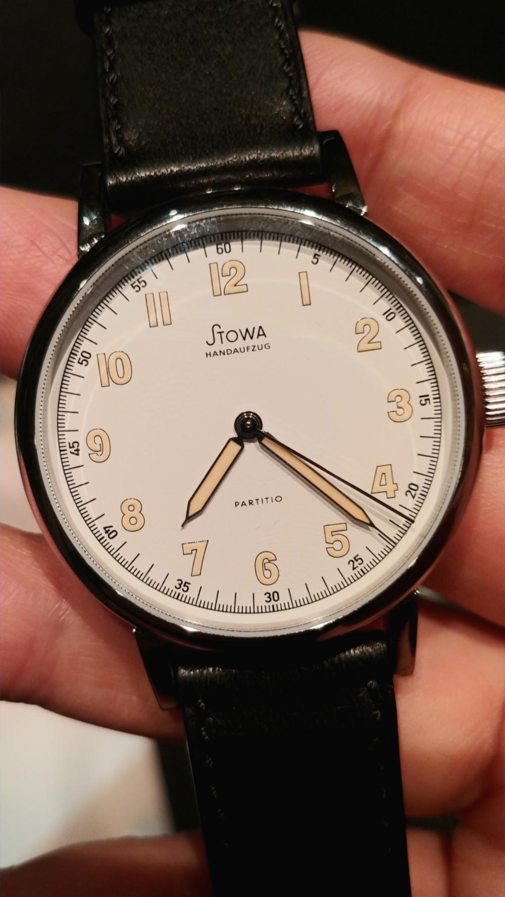 오토매틱 모델도 있지만 이건 Valjoux 7753를 손본 STOWA 인하우스 수동 모델입니다.다이얼이 검정색인 모델도 있습니다.