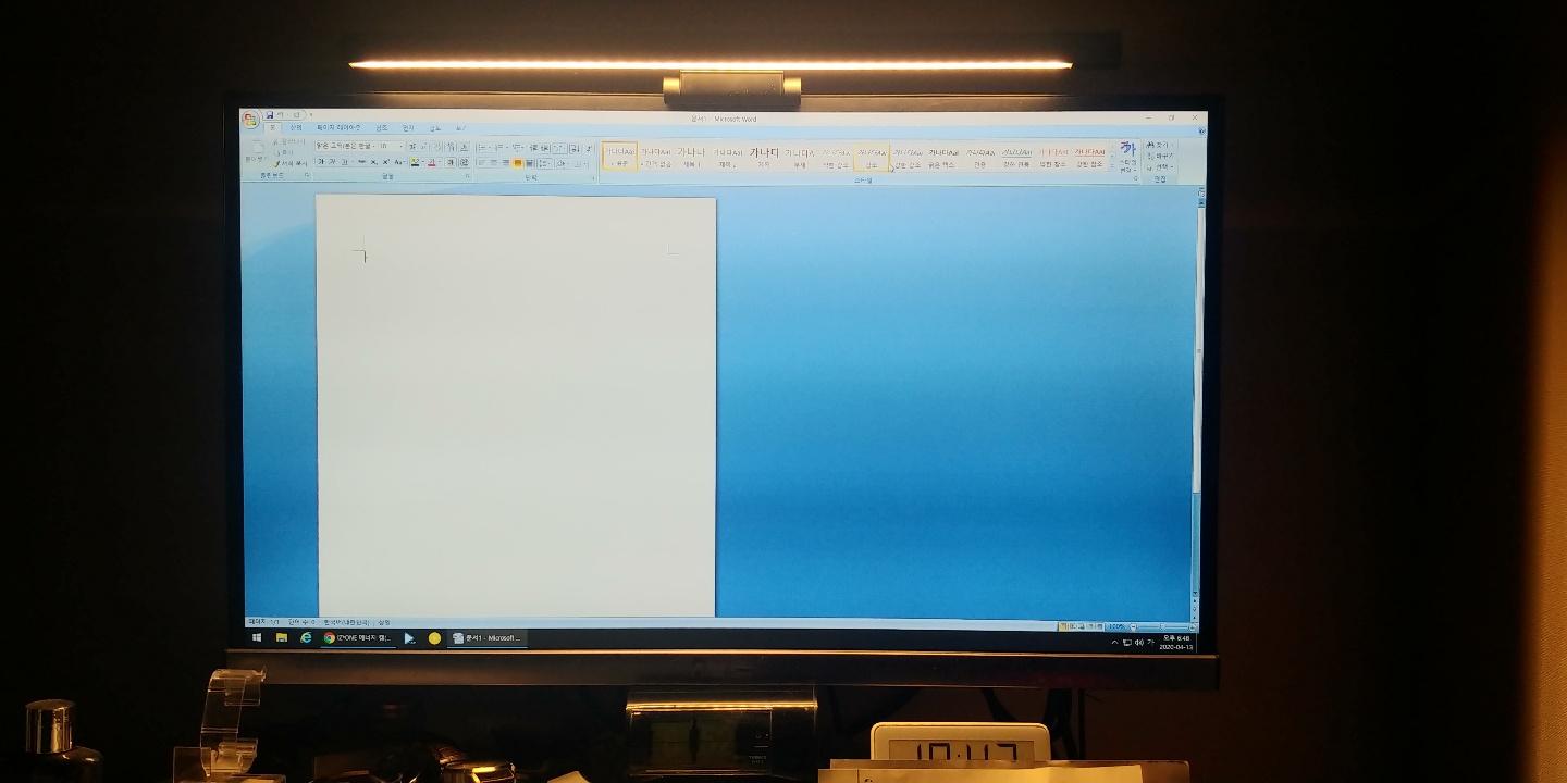 제품을 모니터 위에 올려둬보니 확실히 주변이 밝아져서 책을 읽거나 서류를 보면서 작업하기가 편해졌습니다.