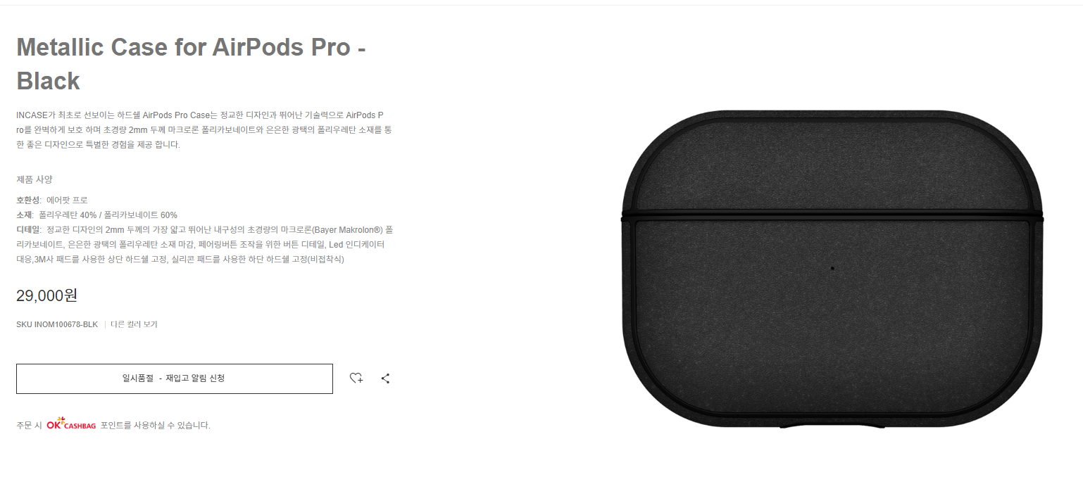 해당 제품은 애플 온/오프라인에서만 판매하고 있고 인케이스 홈페이지에서는 따로 판매하지 않는 제품입니다.