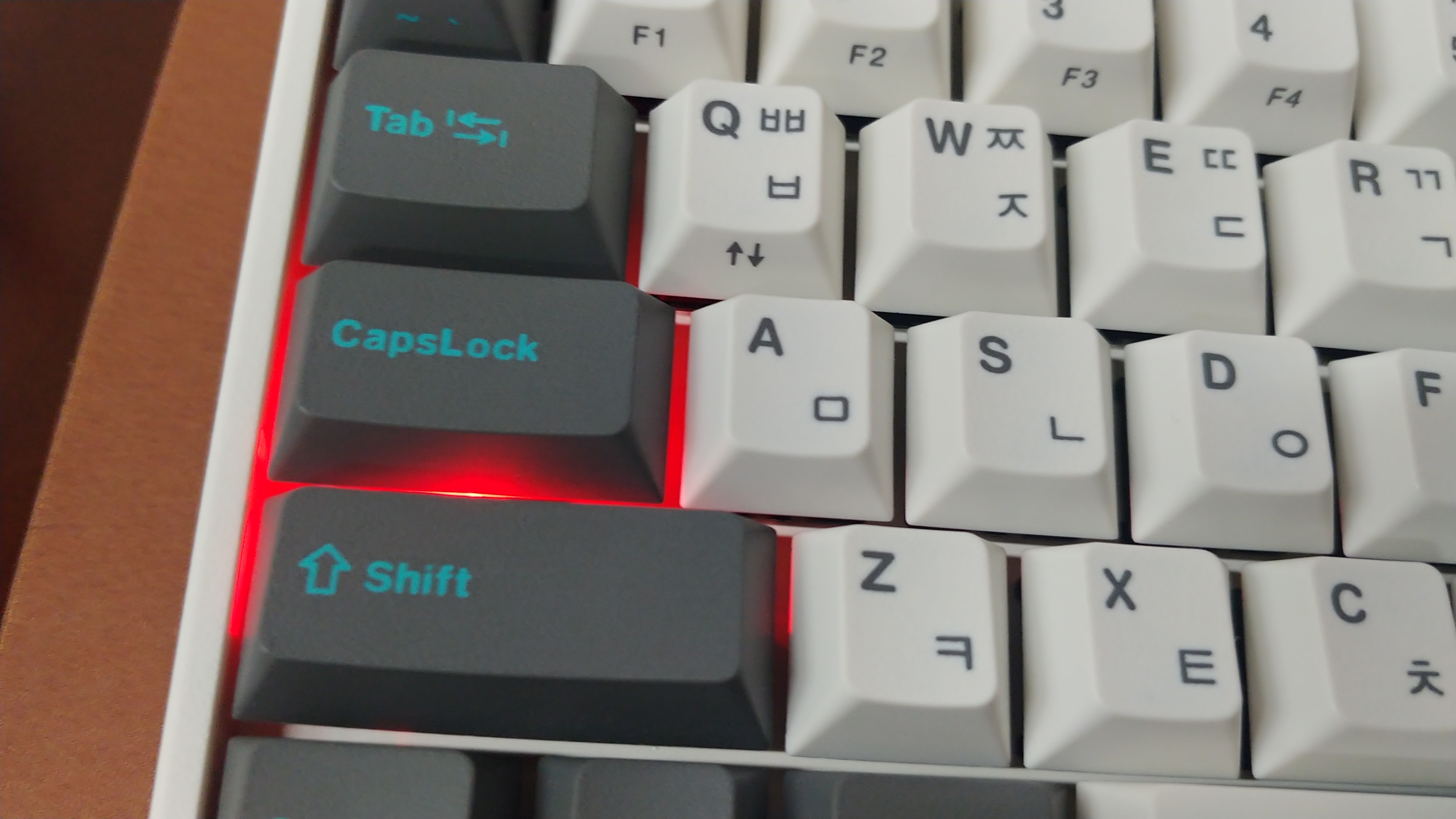 인서트에서 나오는 LED빛은 ESC키에 대한 설정 알람이지만 캡스락 버튼을 누르면 나오는 LED는 순수하게 캡스락 자체에 대한 알람입니다.