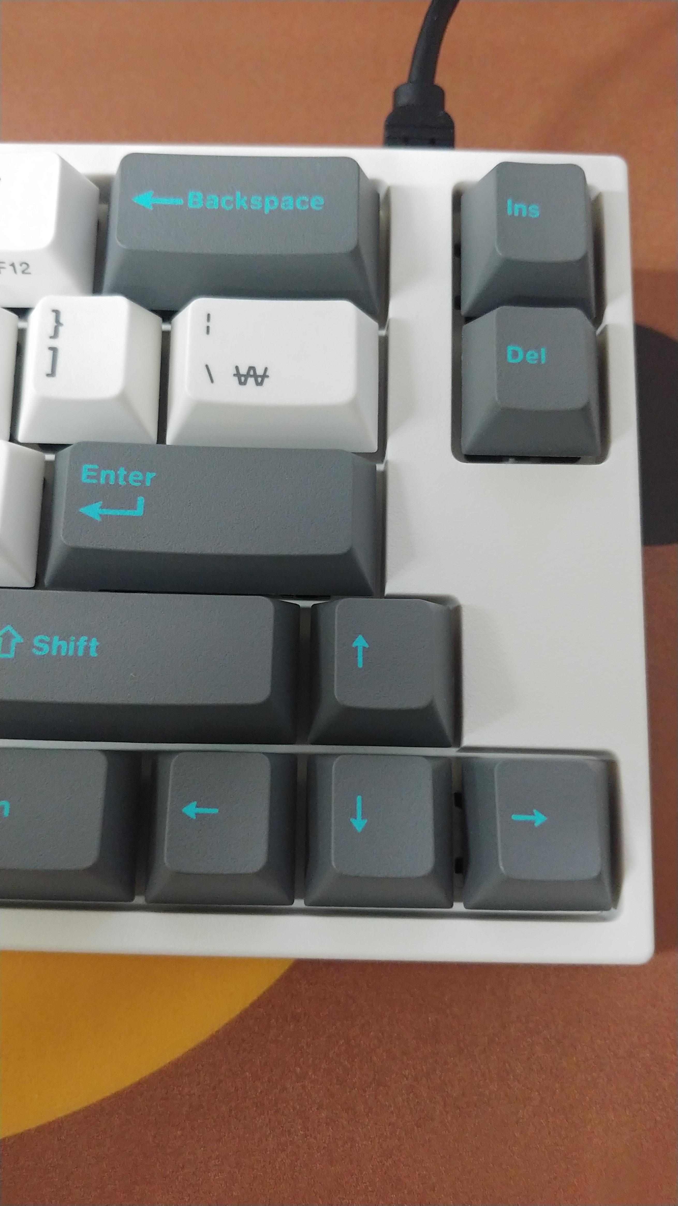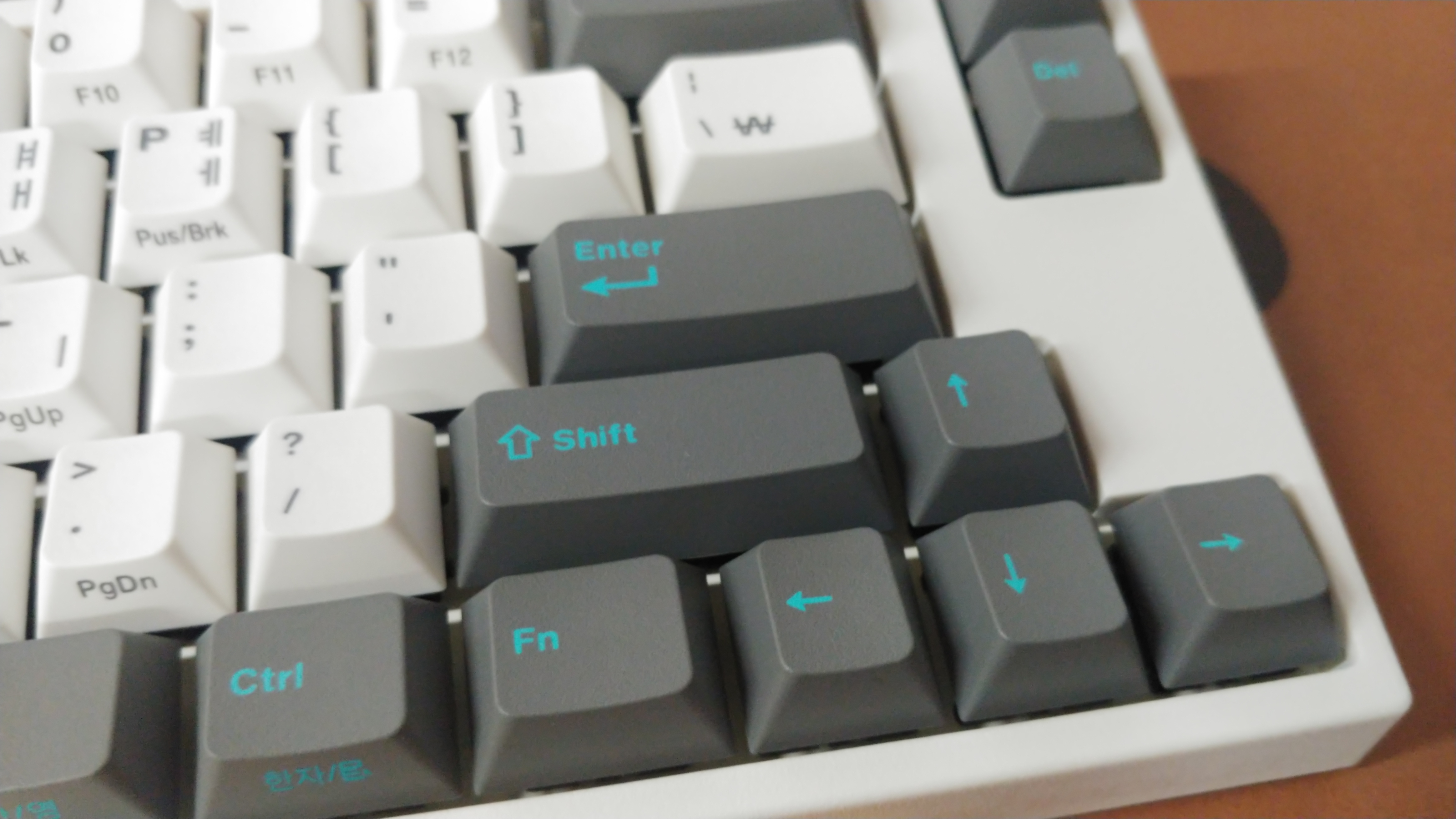 사실 이 키보드를 구입하기전에 가장 마음에 걸렸던 점은 66키라는 아주 심플한 구성 덕분에 사라진 상단부 F1~F12까지의 펑션키들과 오른쪽 쉬프트에 바짝 붙어 있는 화살표키였습니다.