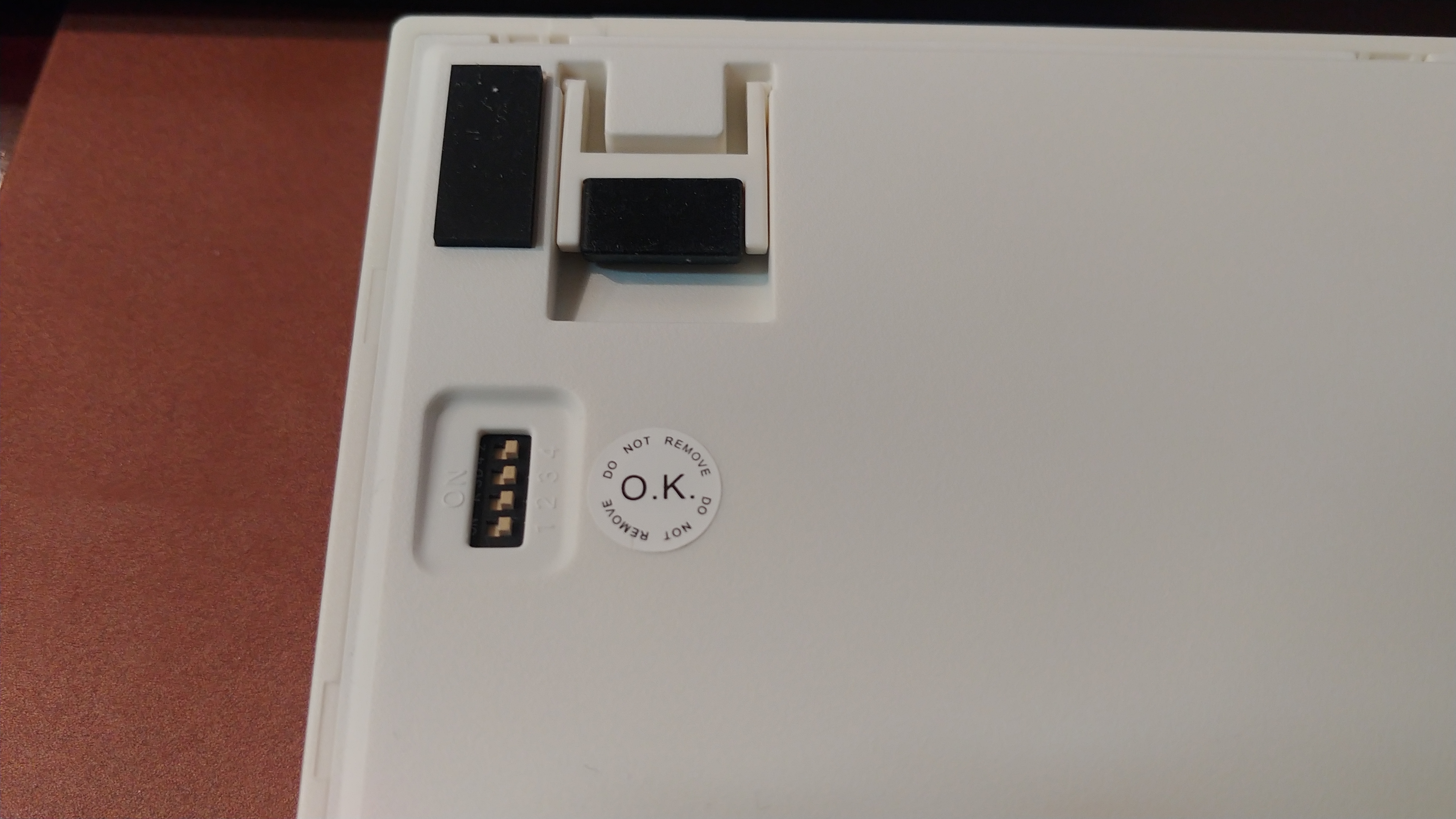 오른쪽 후면에는 키보드 설정을 바꿀 수 있는 DIP 스위치가 존재합니다.