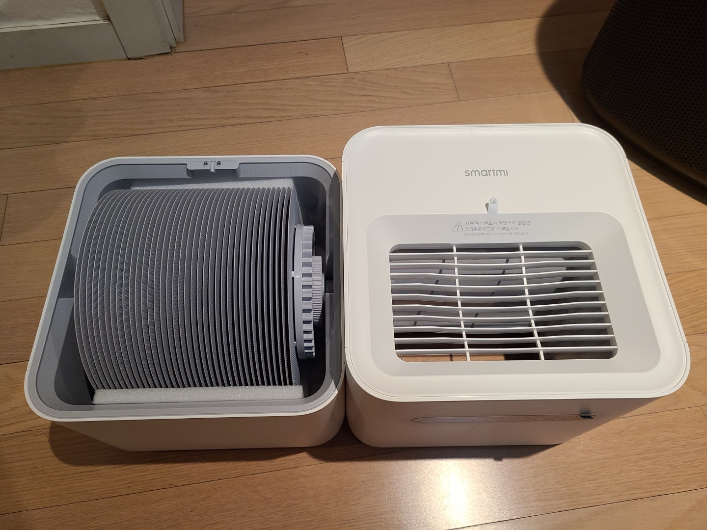 - 아시는 분은 아시겠지만, 초음파식 가습기를 사용하면 공기 청정기를 제대로 돌리기가 어렵습니다. 공기청정기의 센서가 초음파식 가습기가 생성해내는 물방울 (혹은 물방울에 들어있는 미네랄)을 먼지로 인식하기 때문인데요.