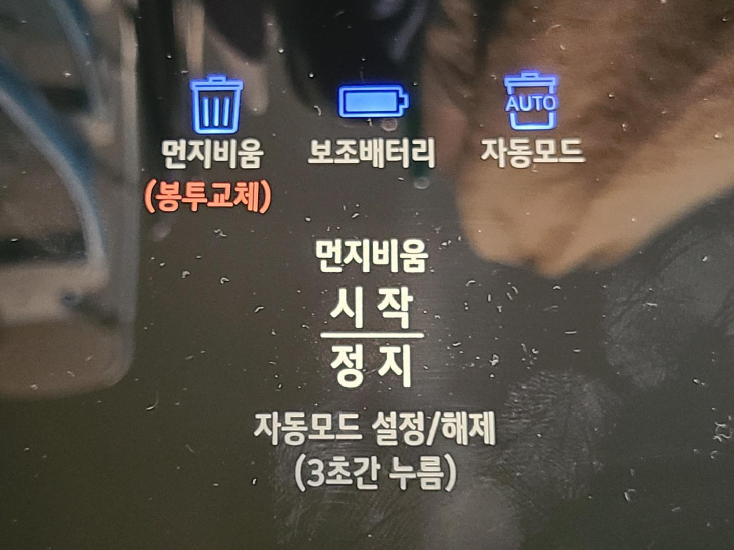 가장 좌측은 먼지봉투가 다 찼을 때 알려주는 먼지비움 알람
