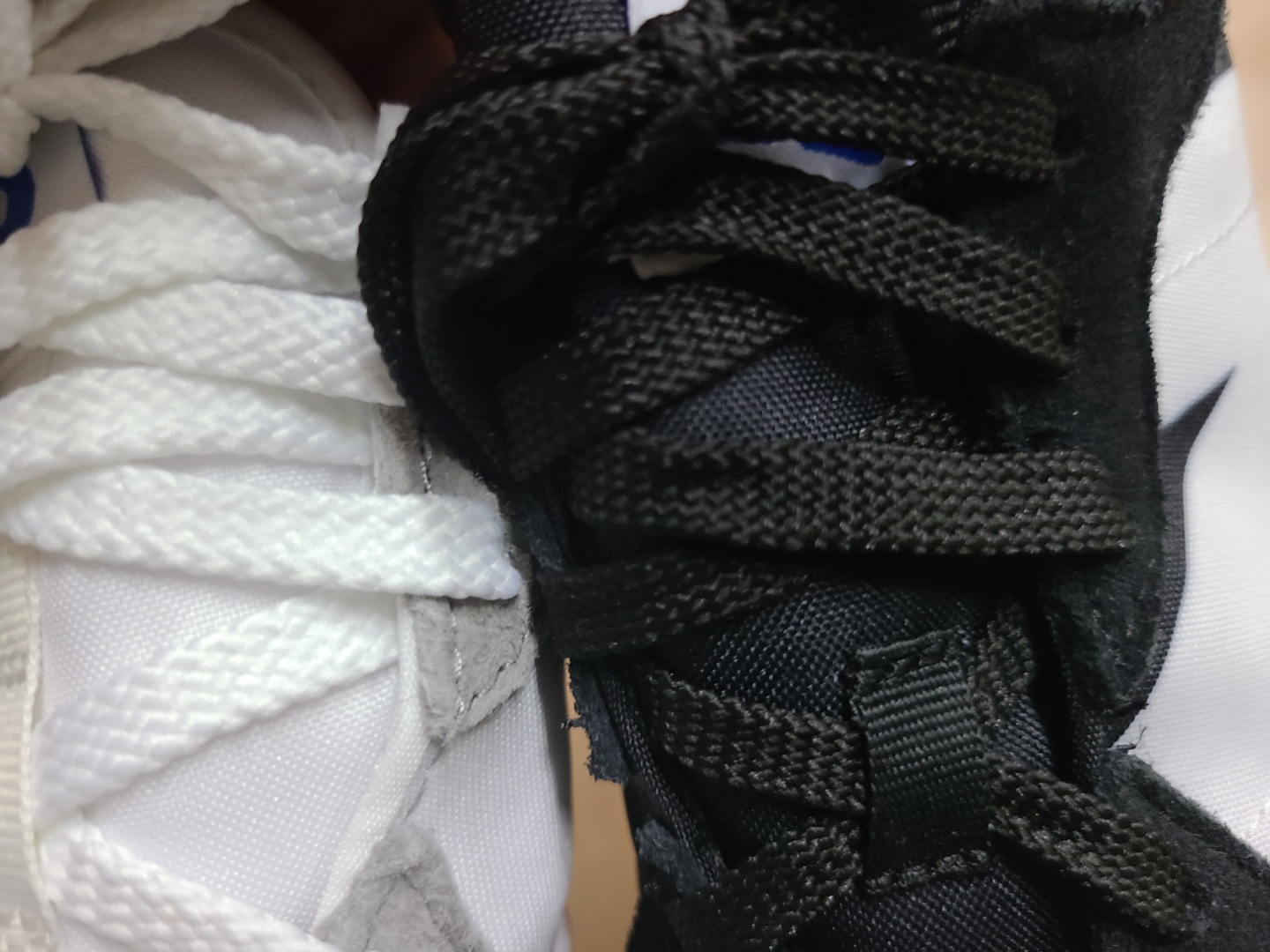눈으로 보면 신발끈 폭이 조금 차이나는 것 같지만 실제로 자로 측정해보면 6 mm 정도로 차이는 없었습니다..