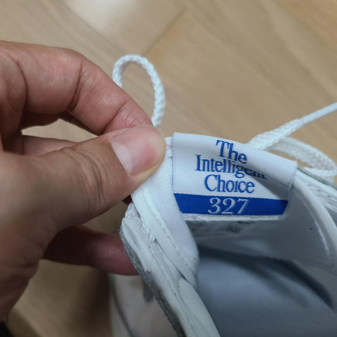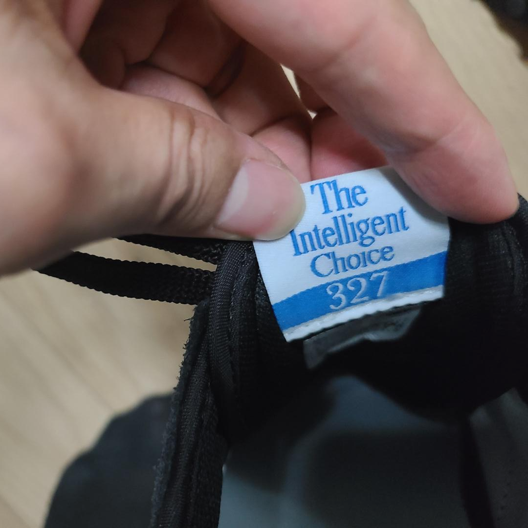 신발 혀 뒷부분에는 'The Intelligent Choice'라고 적혀있고 그 밑에 327 숫자가 써있습니다.