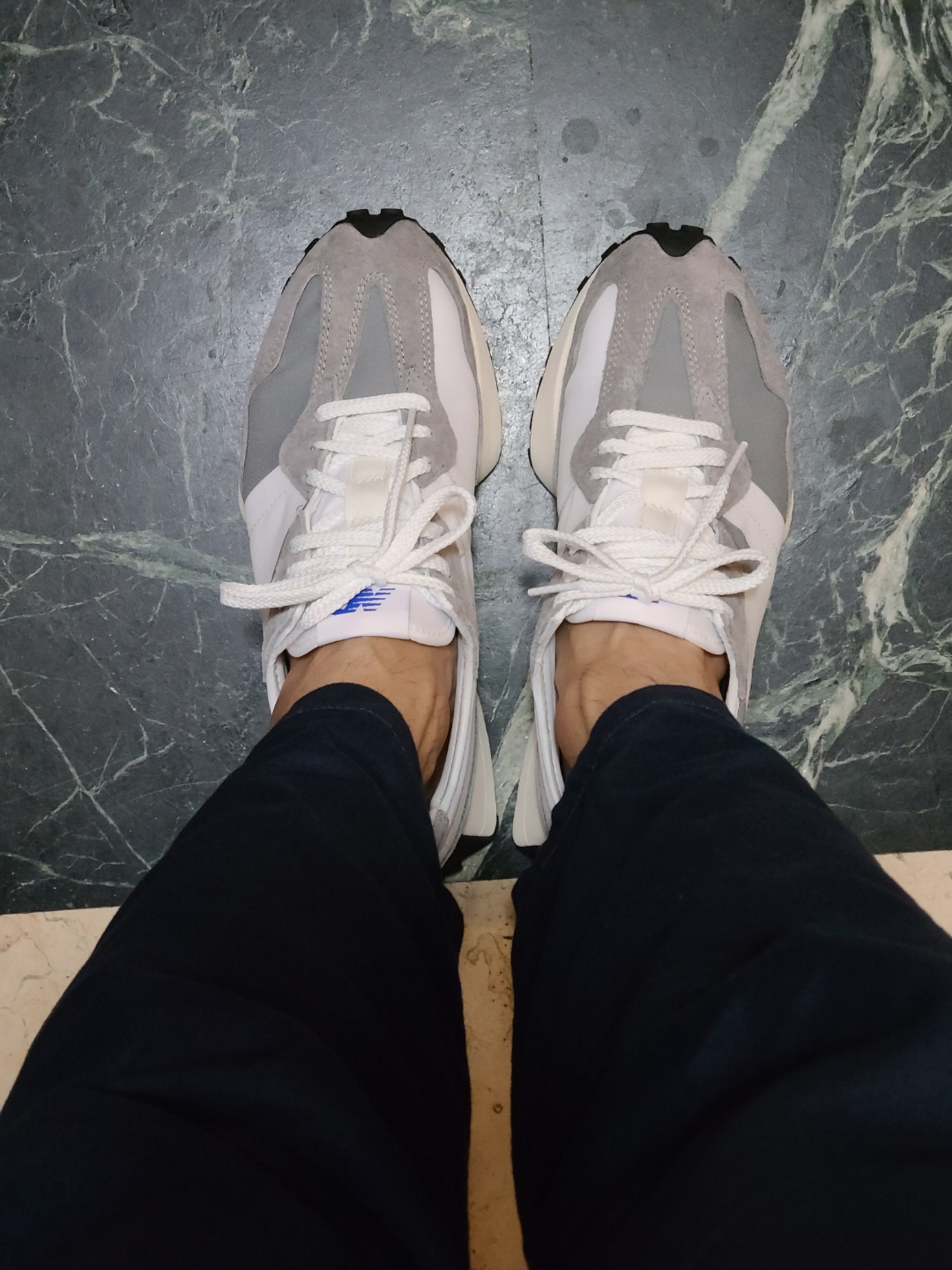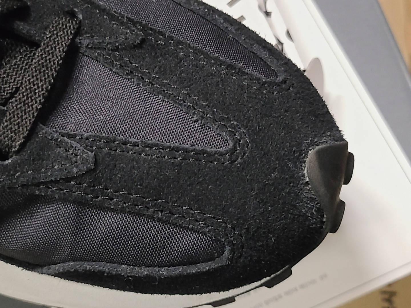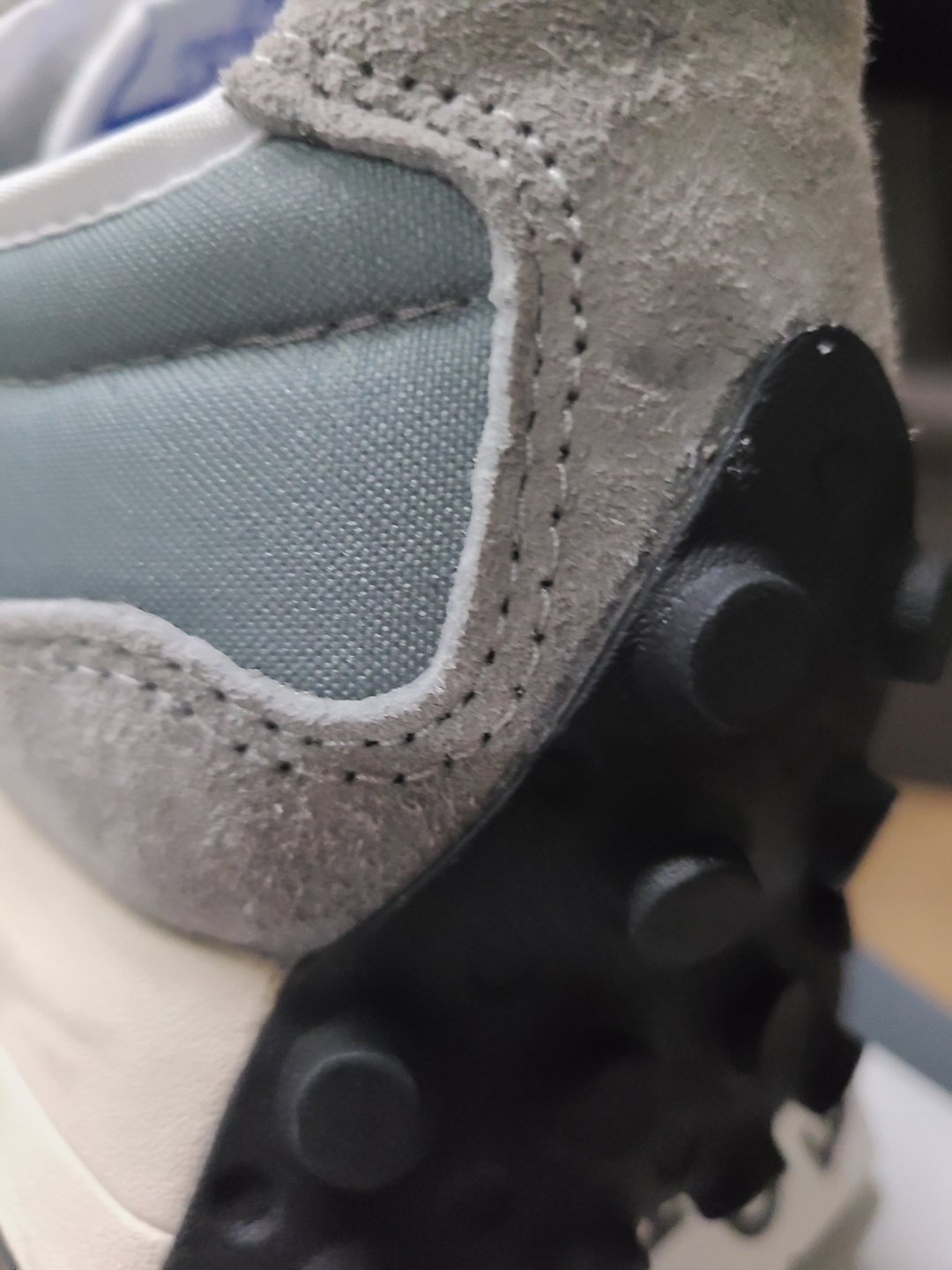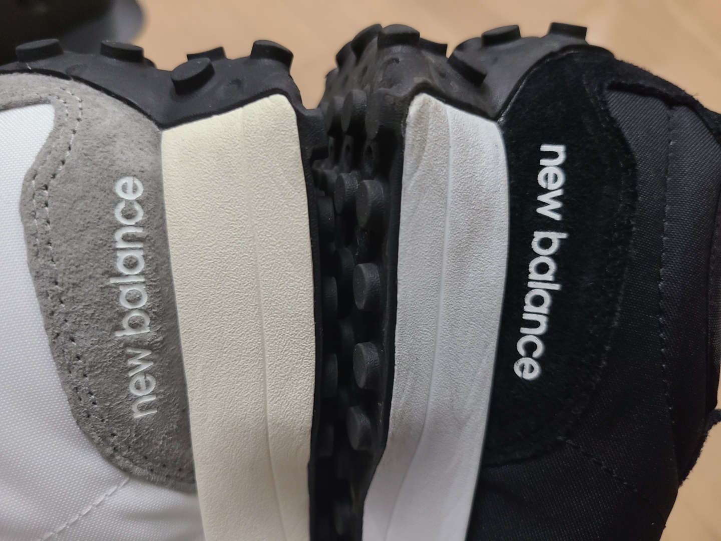 처음엔 몰랐다가 신발을 신고 다니면서 알게 된 것인데 327 블랙은 뒷꿈치 부분 이너가 폴리에스터입니다.
