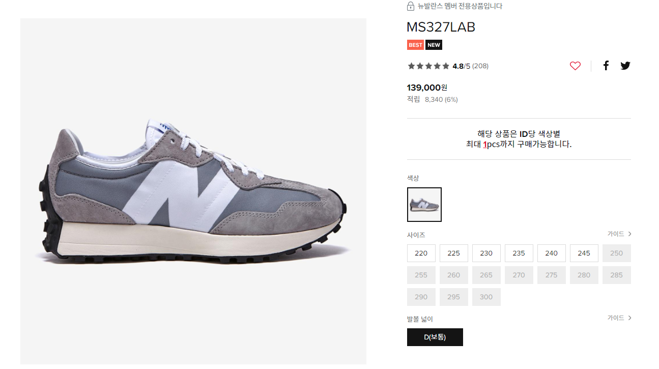 3만원 더 비싼 뉴발란스 327 그레이(MS327LAB), 뭐가 다를까? 본문