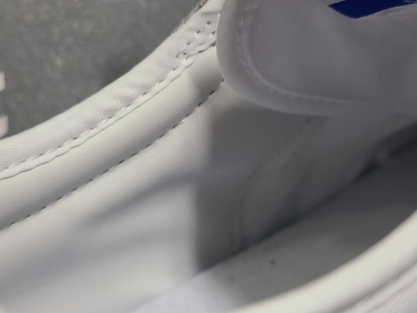 가장 먼저 눈에 띄는 부분은 바로 신발 혀 상단에 슈레이스를 고정하는 부분입니다.