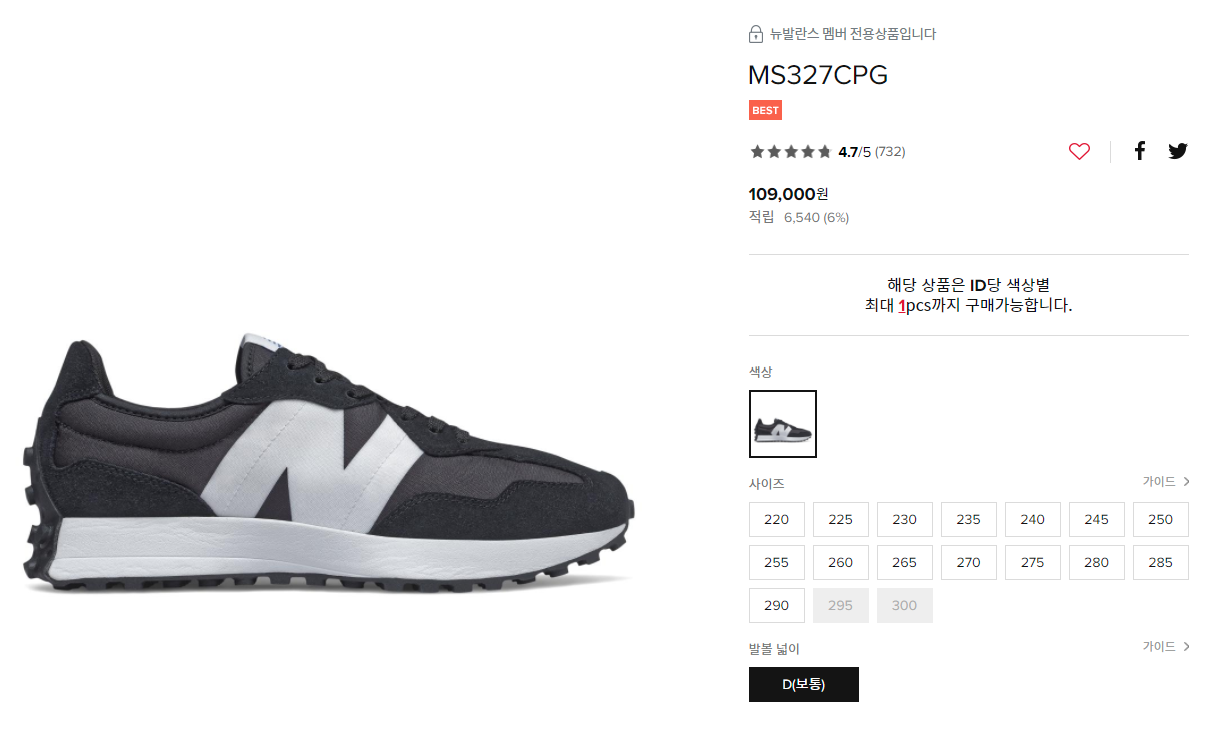아닙니다 ;; 블랙 327 제품은 신촌 뉴발란스 직영 매장을 직접 방문해서 구매하였습니다.