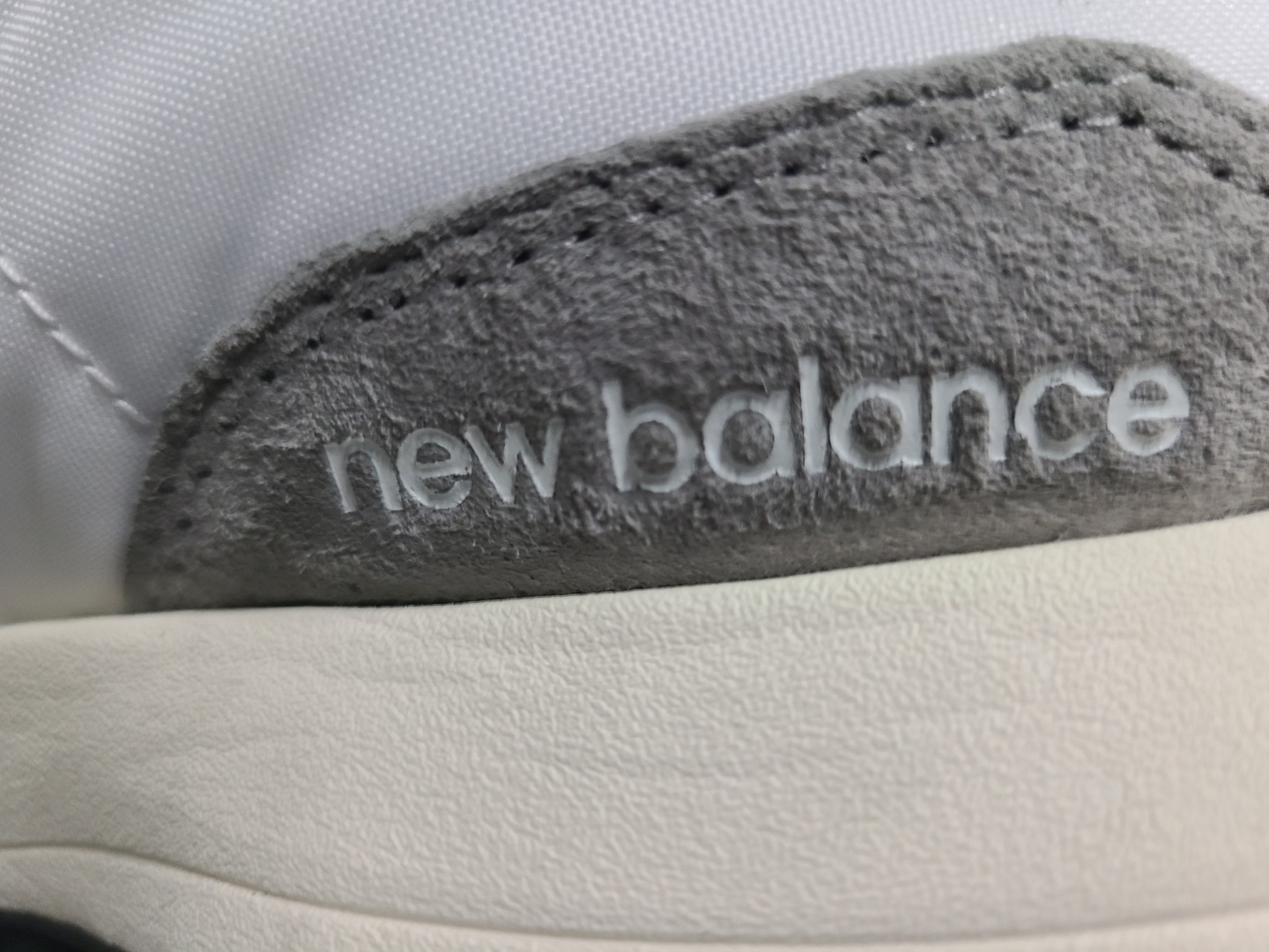 327 안쪽 스웨이드 갑피에는 영문 new balance 로고가 있습니다.