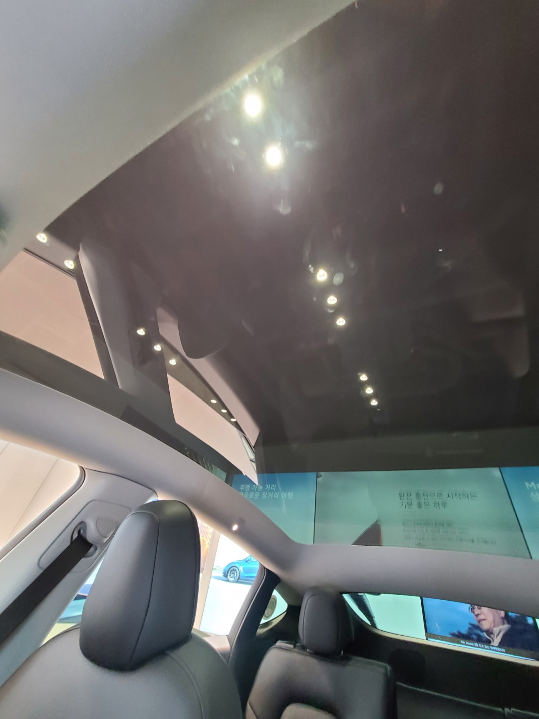모델Y의 글라스루프는 차량이 야외에 계속 서있었음에도 불구하고 큰 열감이 느껴지지 않았습니다. 인트스럭터에게 틴팅을 한 것이냐고 물어보았고, 순정이라는 답을 들었습니다. 제가 구입한다면 글라스 루프는 따로 틴팅을 안해도 되겠다...라는 생각이 들었지만 짧은 시간 시승이라 실사용에서는 얼마든지 달라질 수 있다 생각합니다.