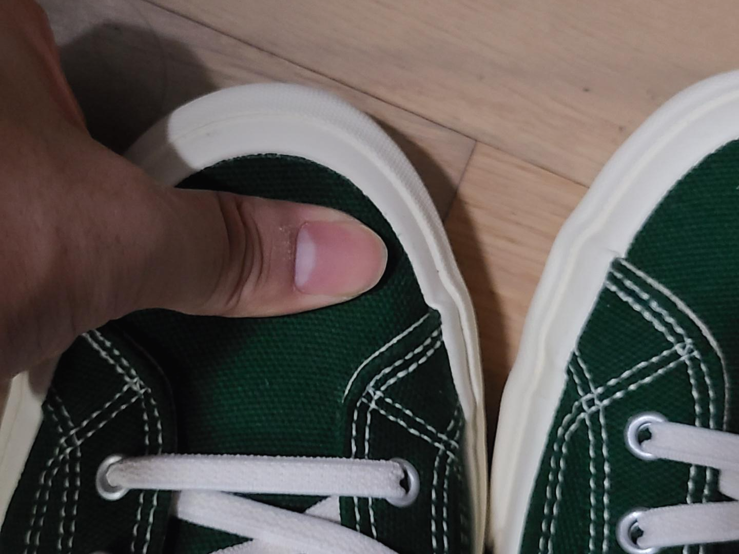 엄청나게 멋진 녹색 스니커즈를 봐 버렸다.