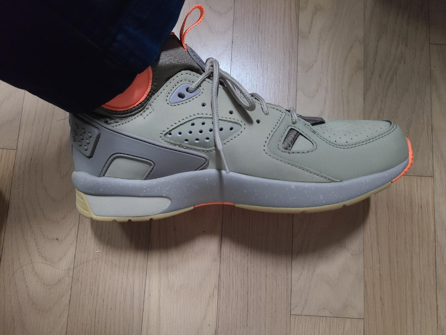 저는 보통 270 mm 신발을 신고 나이키 신발은 기본 275 mm를 신는데 에어 모와브는 허라취 후기 + 두꺼운 양말을 신을 수도 있는 가능성을 염두한 선택이 280 mm였습니다.