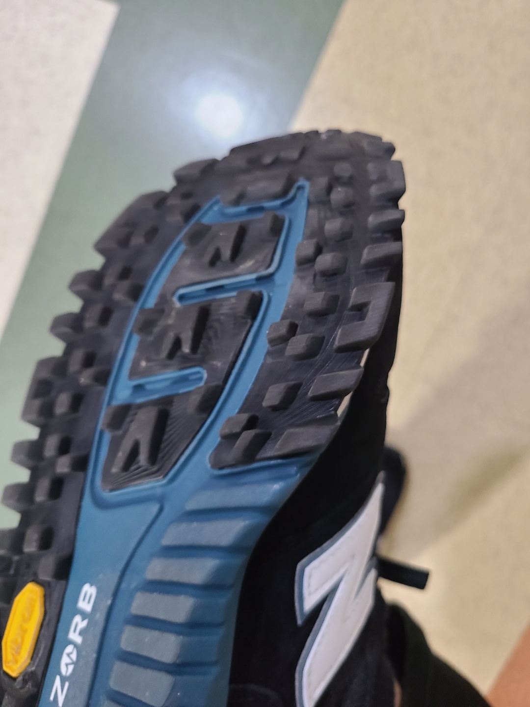 걸을 땐 비브람이 먼저 땅에 닿고 체중이 실리면서 ABZORB가 살짝 땅에 닿는 모양새입니다.
