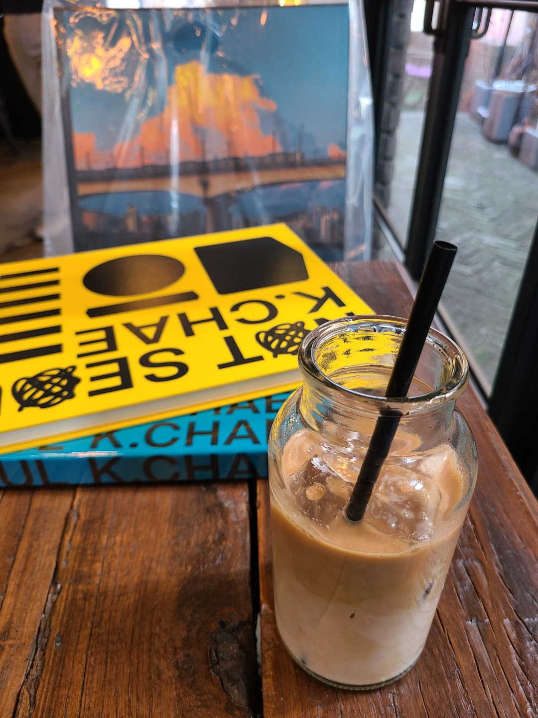 사진전을 다 둘러보고 근처 카페로 와서 사진집을 뜯어 하나하나 구경했습니다.