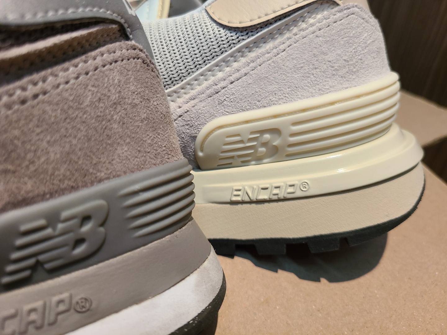 짧고 넓게 보이는 574의 실루엣을 개선하고 미드솔의 높이를 무려 2 cm나 높였다고 합니다.