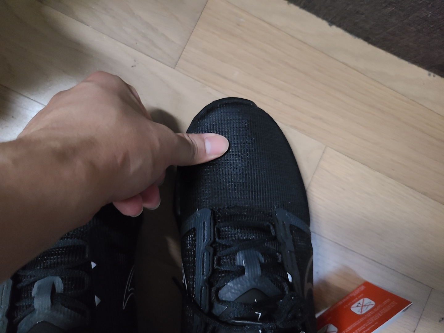 발볼과 발등은 280 mm도 잘 맞았지만 발 앞 부분에 공간이 남아서 운동을 할 때 발이 놀 것 같은 느낌이 들었습니다.