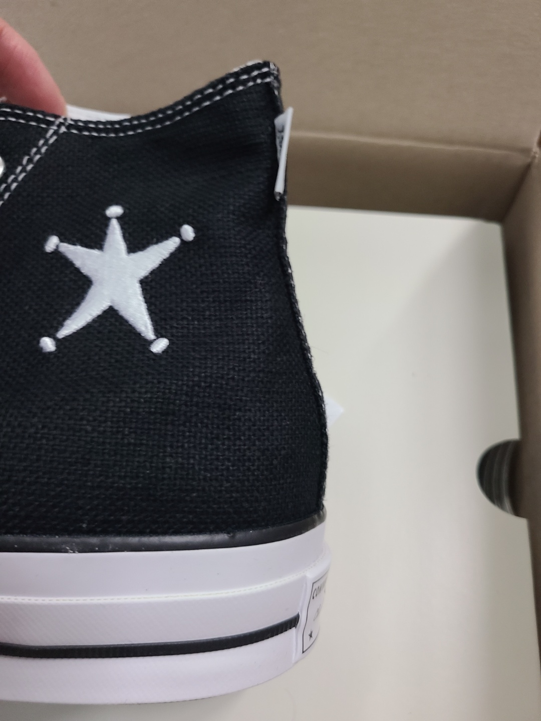 무난한 컬러에 특별함이 없어 보이는 스투시 척70이지만 기존 척70모델과 실루엣을 비교해보면 발 뒷꿈치 부분의 굴곡이 다름을 사진에서 확인할 수 있습니다.
