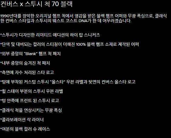 협업 제품은 스투시 코리아 공홈에서 먼저 발매가 되었고, 몇 일 뒤 컨버스 코리아에서도 발매를 하였습니다.