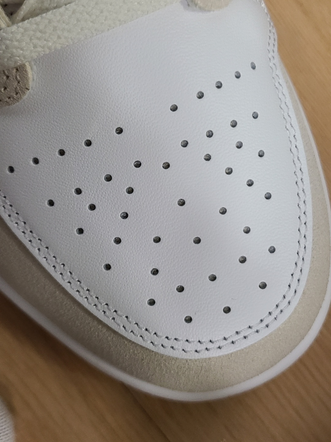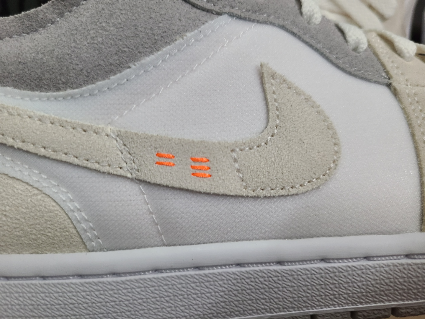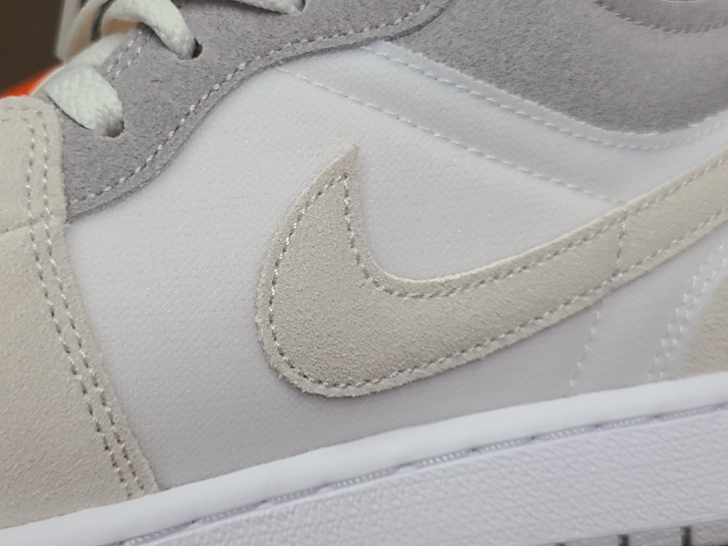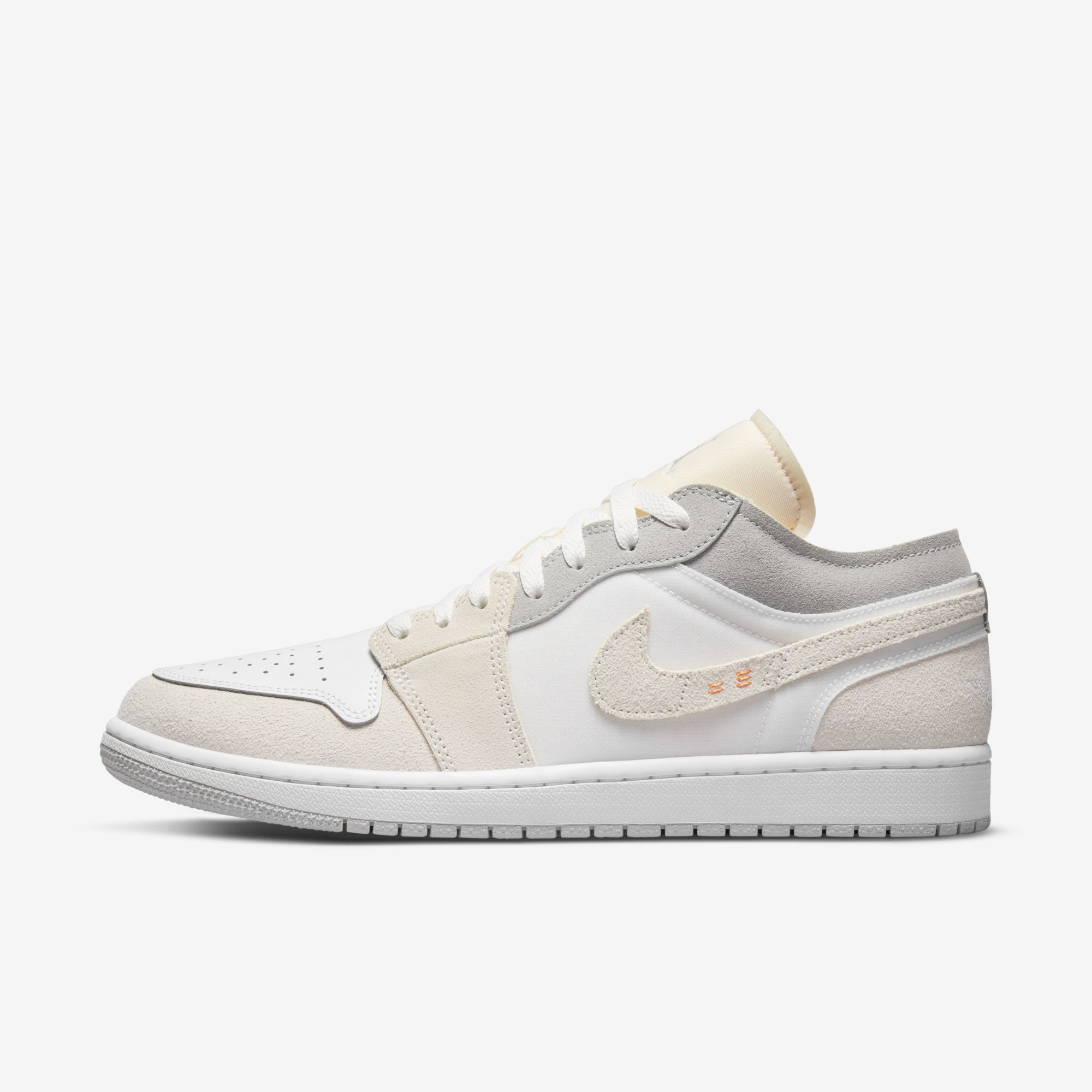 로우와 미드 모델로 발매 되었는데, 로우 모델은 뱀프 가죽이 하얀색에 토캡이 아이보리 스웨이드로 보이고, 미드 모델은 뱀프가 회색에 토캡이 화이트 가죽입니다.