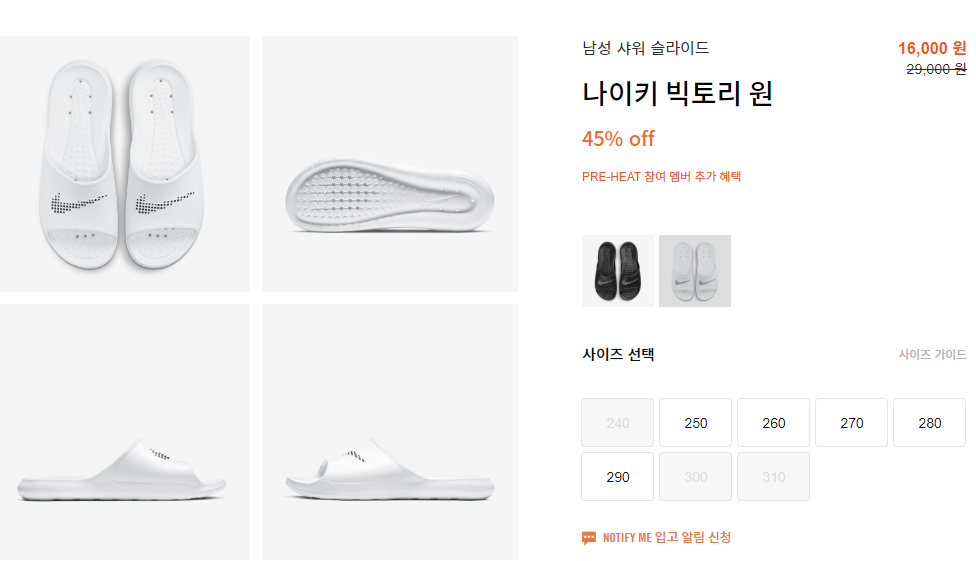 화이트, 블랙 두가지 컬러이고 두 컬러 모두 45% 세일한 가격입니다.