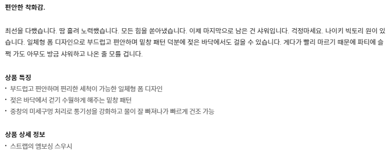일상생활용으로도 나쁘지 않지만, 전천후 아웃도어 신발로 사용하실 때 더 빛이 날 신발이라 생각합니다.