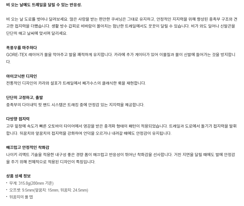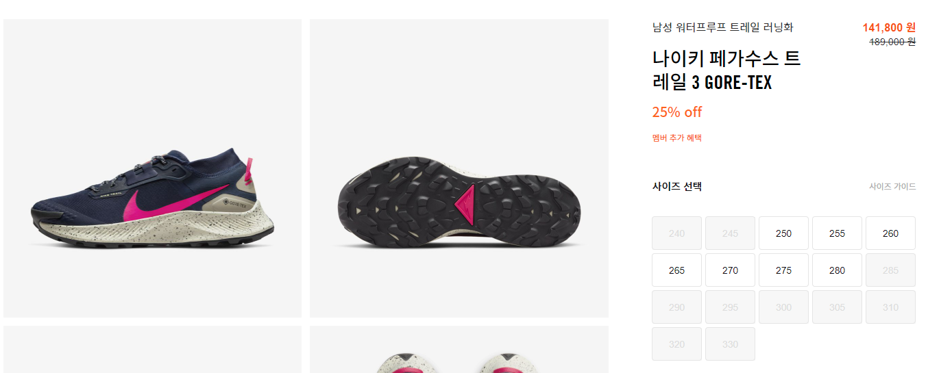 혹시 눈과 비가 오는 날 신을 고어텍스 신발을 찾고 계시다면 나이키 페가수스 트레일 3 고어텍스를 조심스럽게 추천해봅니다.