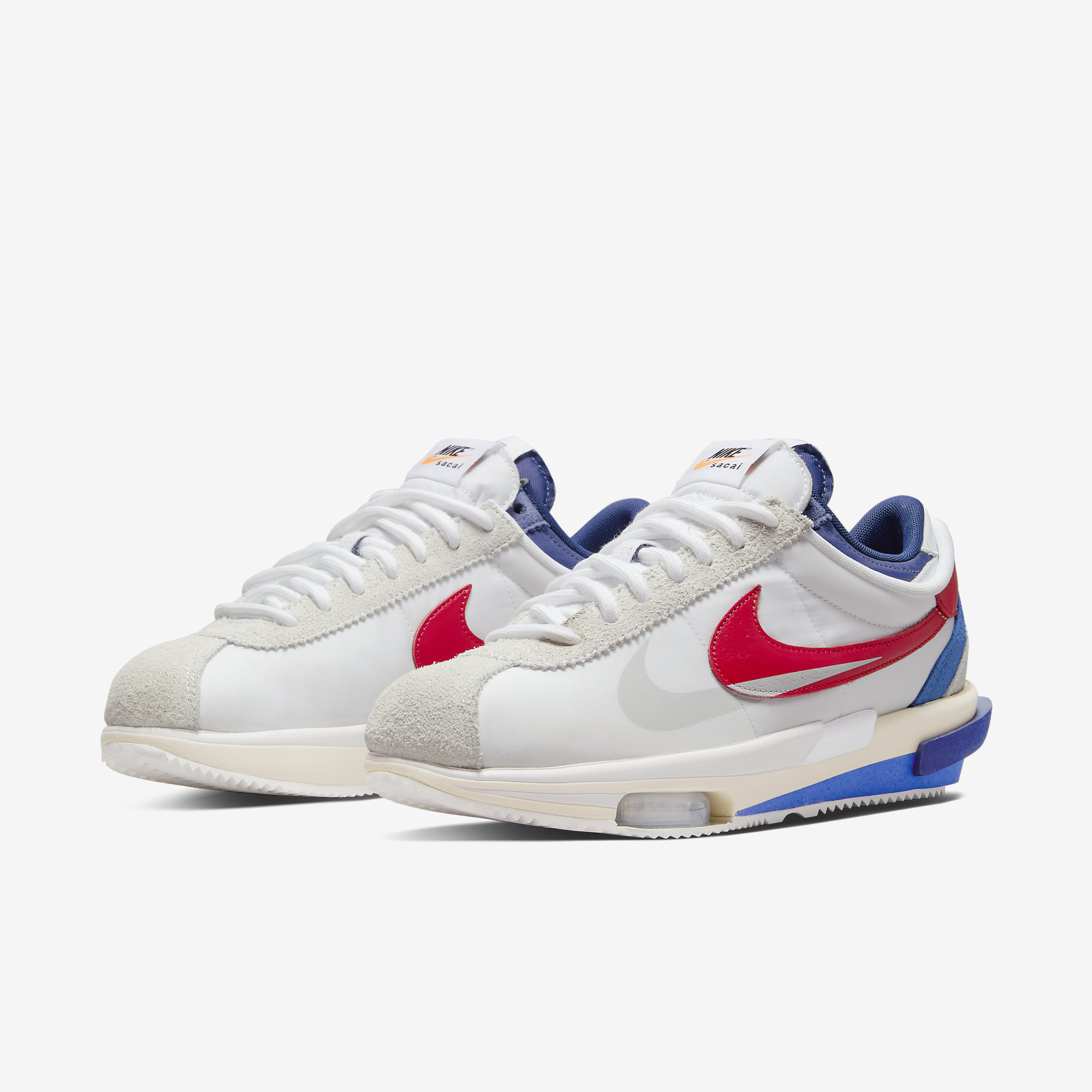 나이키 X 사카이 줌 코르테즈는 맥시멀한 디자인의 사카이 답게 두개의 스우시, 두개의 신발끈, 여러겹의 미드솔과 튀어나온 뒷굽, 그리고 프론트쪽에 줌 에어 유닛이 추가되었지만 코르테즈 특유의 모습은 그대로 남아 있었습니다.