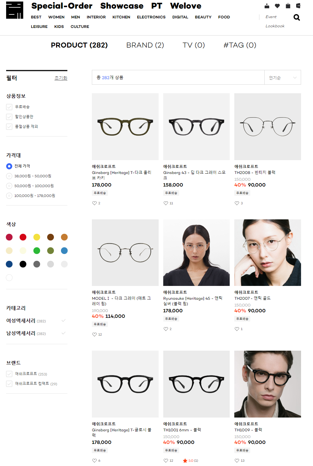 국산 안경브랜드 '애쉬크로프트'입니다.