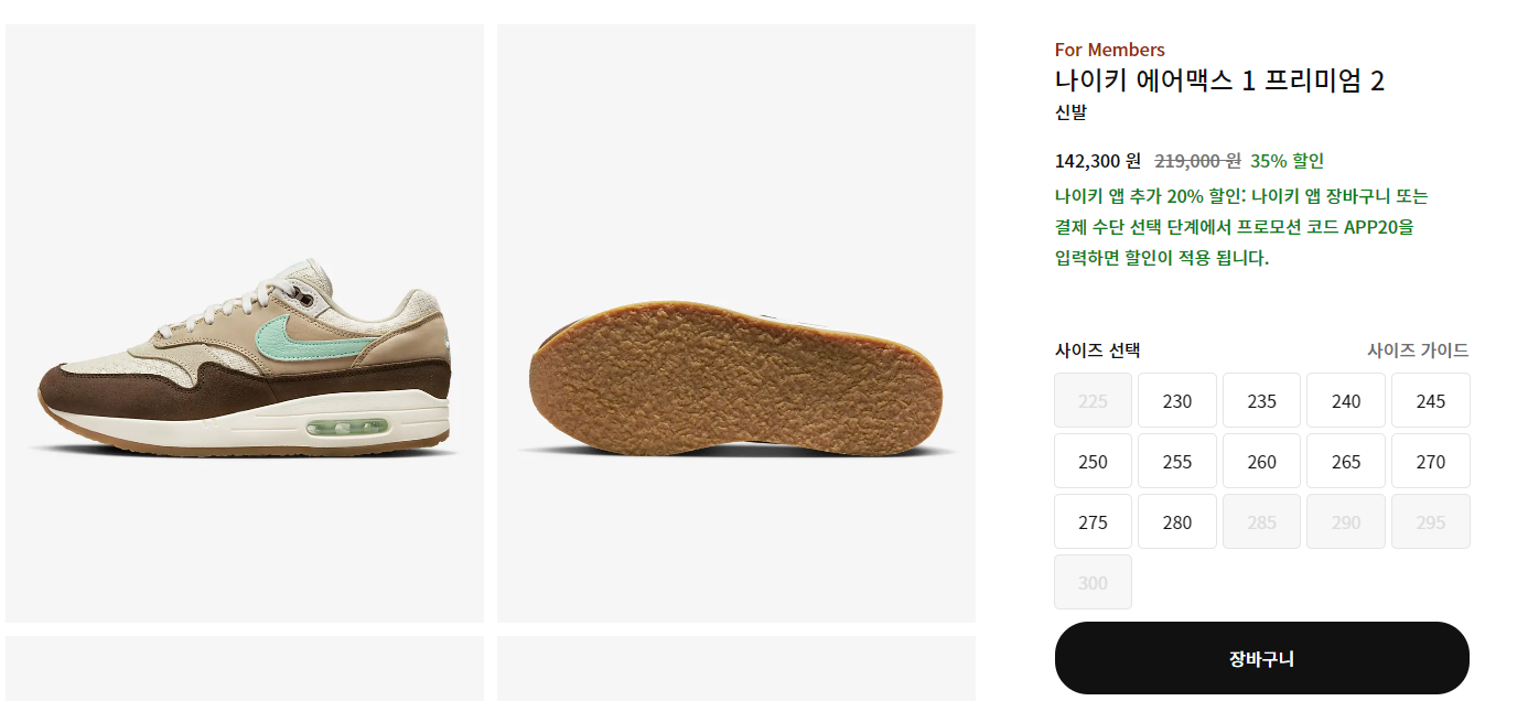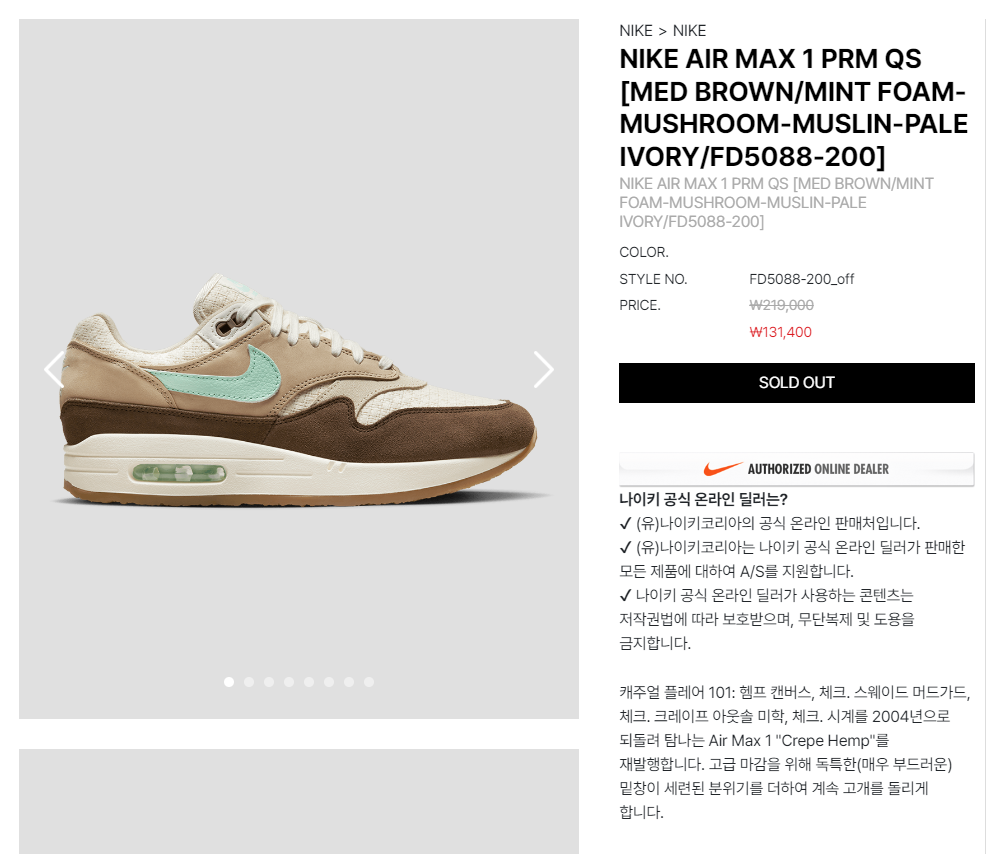 그러던 5월 4일 나이키 멤버 데이즈 추가할인이 시작되면서, 나이키 공홈에 에어맥스1 크레이프 햄프가 다시 올라왔습니다.