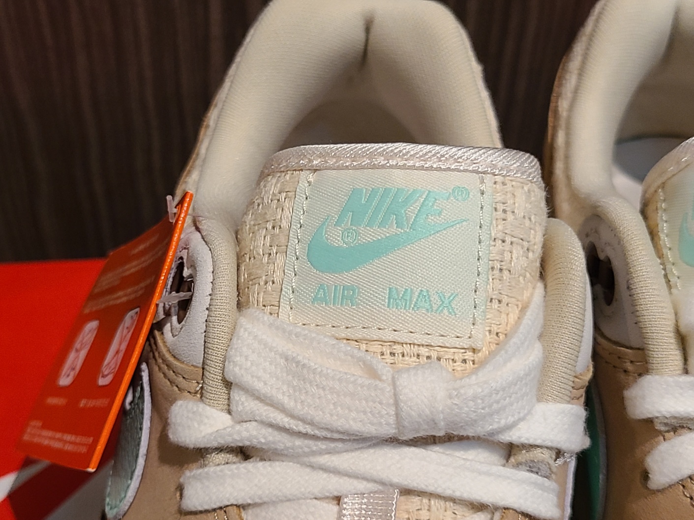 설포 탭에 민트 컬러로 나이키 스우시와 에어 맥스 레터링이 있씁니다.
