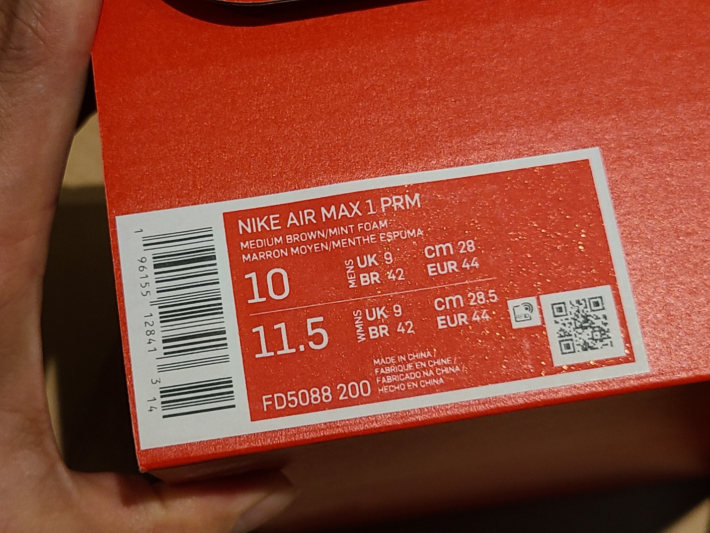 에어맥스1 크레이프 햄프는 프리미엄 모델이지만 박스는 특별한 것 없는 일반 나이키 박스입니다.