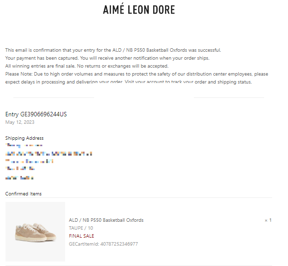 라이트 그레이 550때처럼 이번에도 에임 레온 도르 공식 홈페이지에서 드로우를 통해 진행이 되었는데요.
