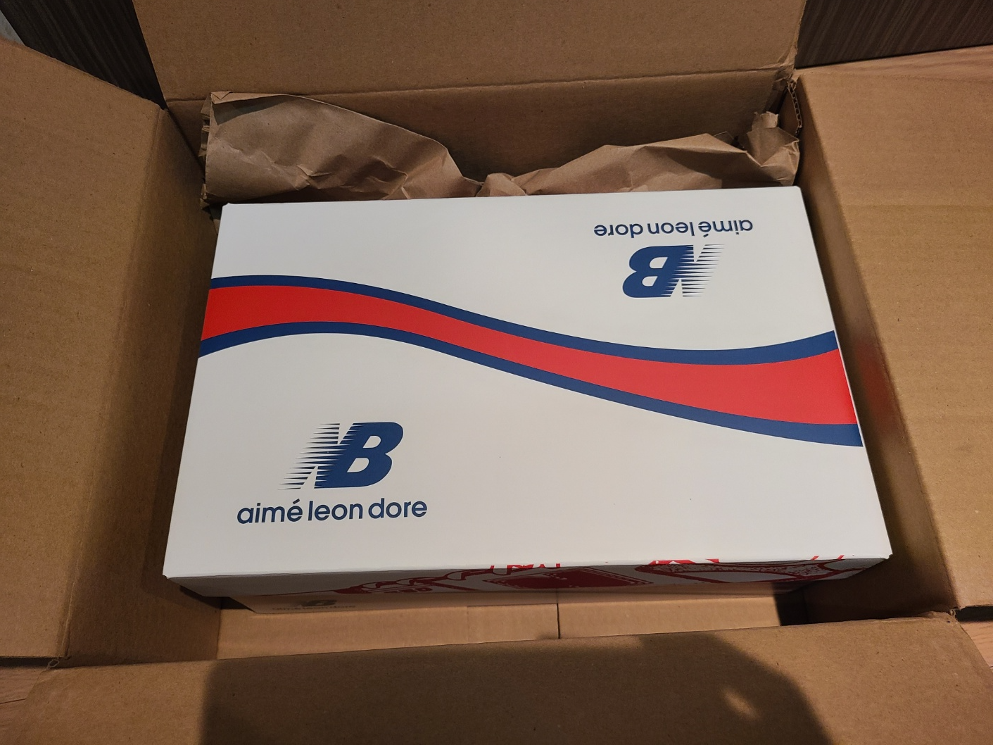 뉴발란스 로고 아래 aime leon dore가 같이 적혀 있습니다.
