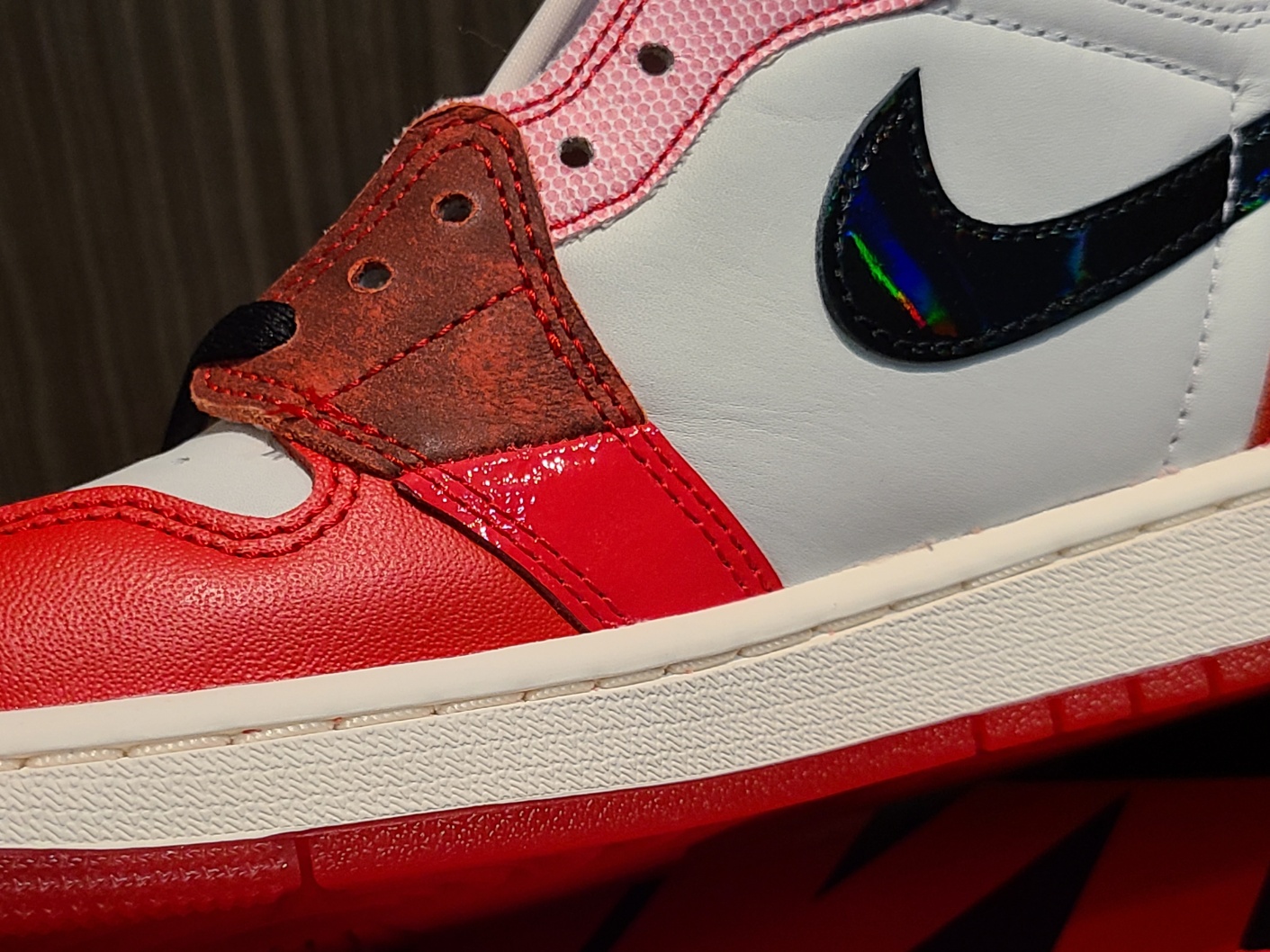 개성넘치는 사이드 패널! 스파이더맨 조던1 하이:넥스트 챕터 (DV1748-601 ) 사이즈 팁 본문